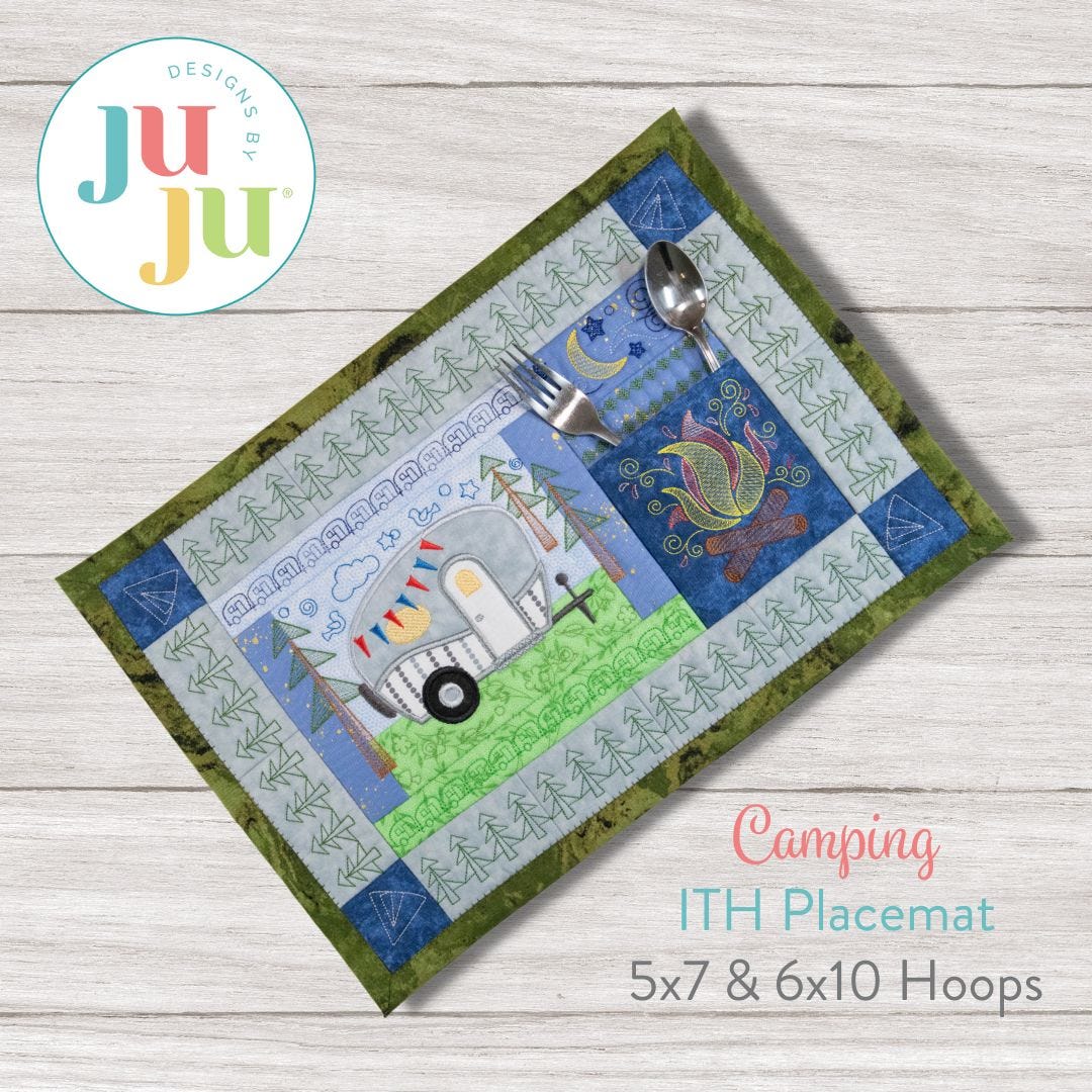 Bring your love of the outdoors to your dining room table with our Camping Placemat! This project features both applique and sketch design elements, different quilting patterns to choose from for the border, and a pocket for silverware!