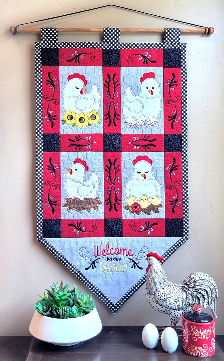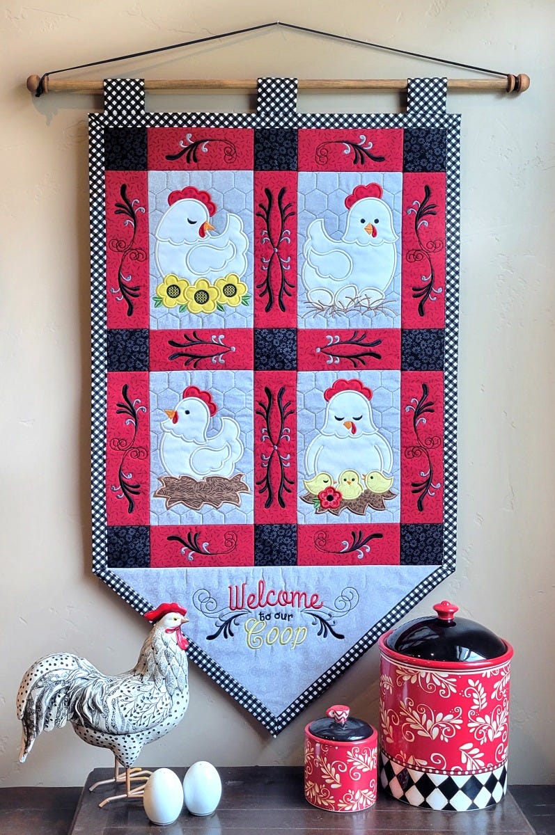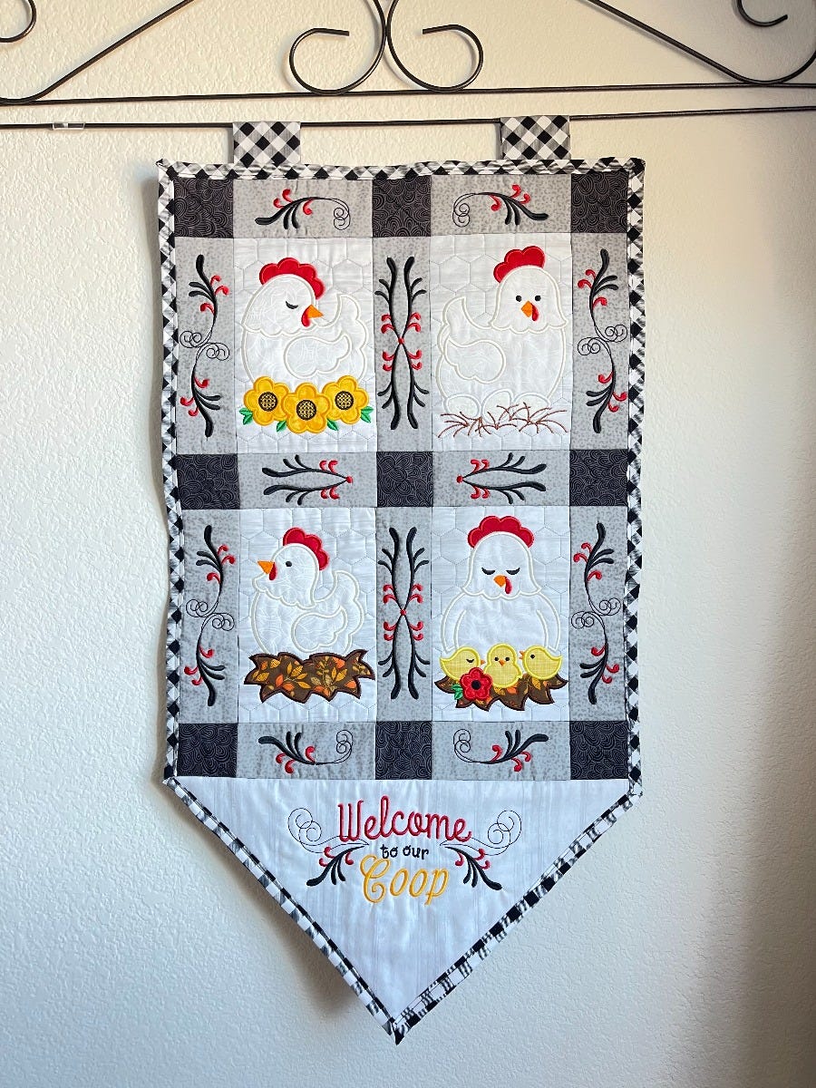Our new ITH Chickens Wall Hanging is the perfect way to welcome guests to your coop! Customize the wall hanging with fun colors and fabric patterns, or coordinate with other ITH chickens projects!
