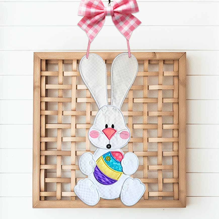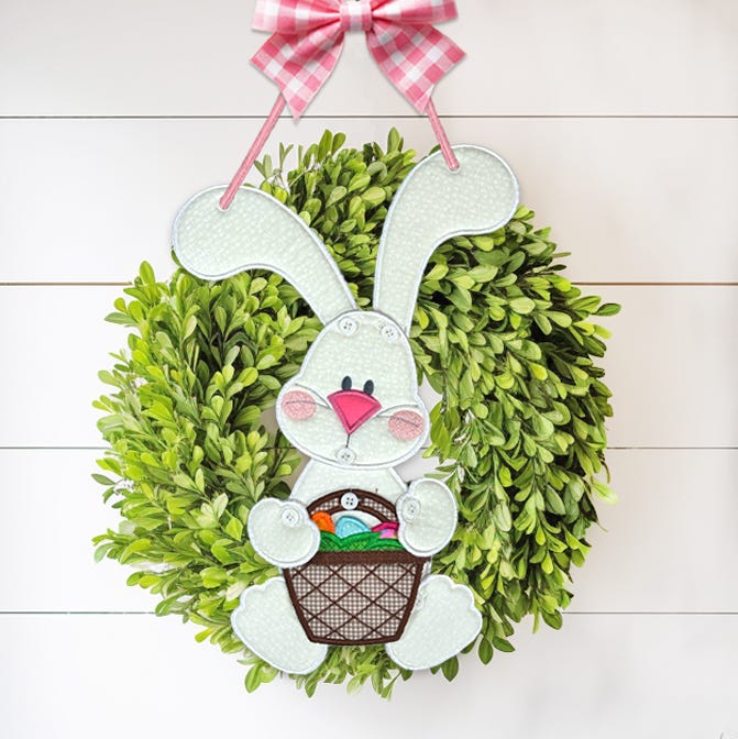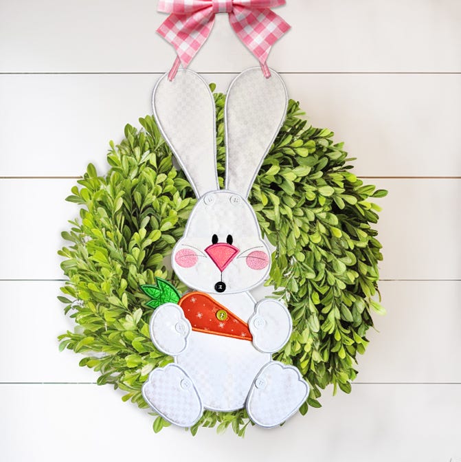 Let spring hop into your home! Create a large Easter Bunny wall hanging that buttons together to hang on your door or wall. Bunny can hold the item of your choice: an Easter basket, carrot or egg. Further customize with your choice of ear shape (straight or bent).