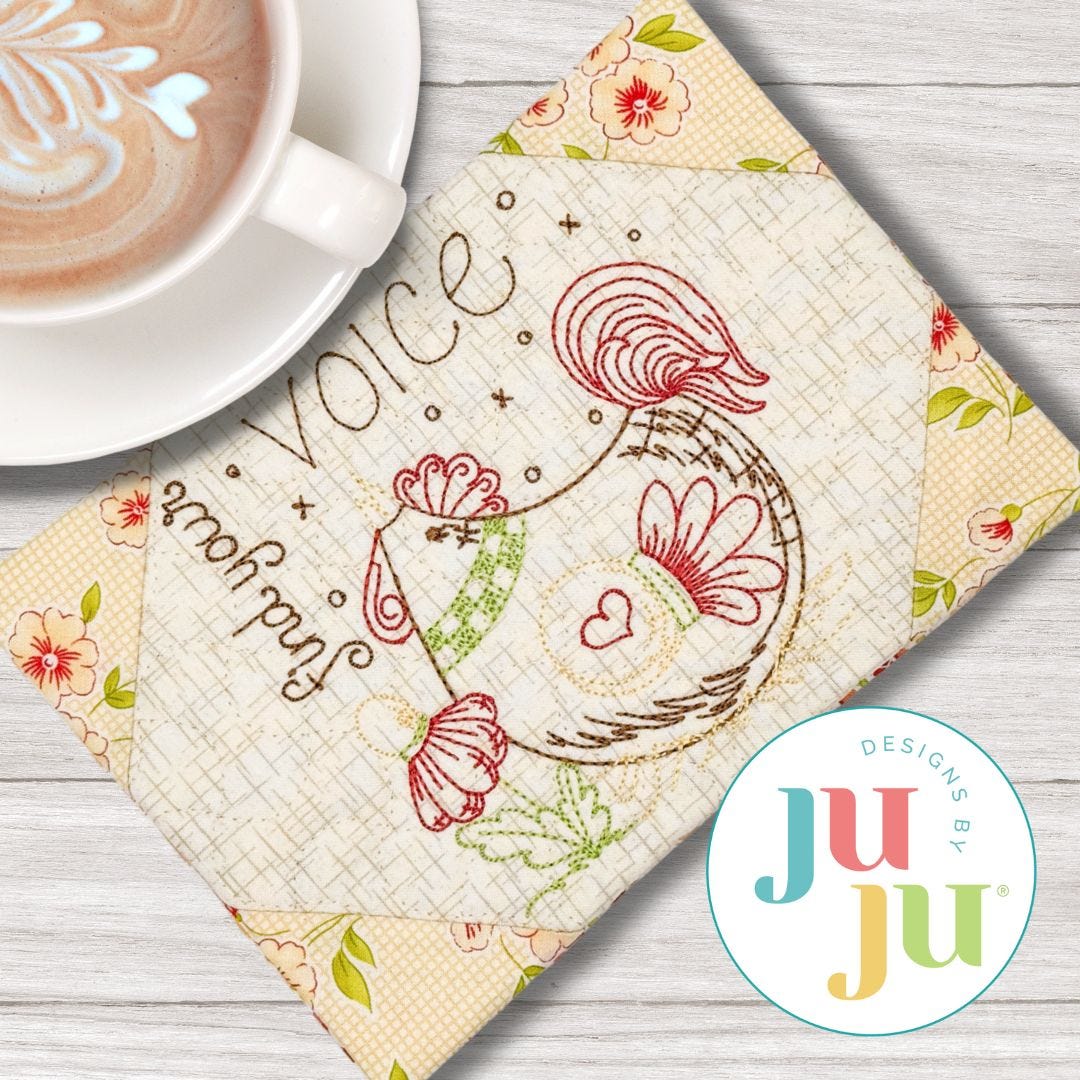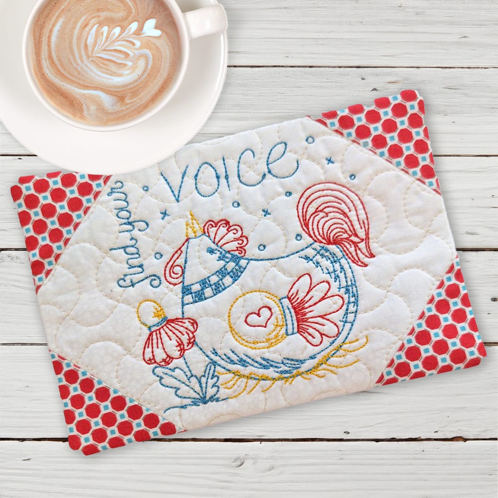 Start your day early like a rooster with our Find Your Voice Mug Rug. It features bean stitch lettering and details for a sweet vintage look.
