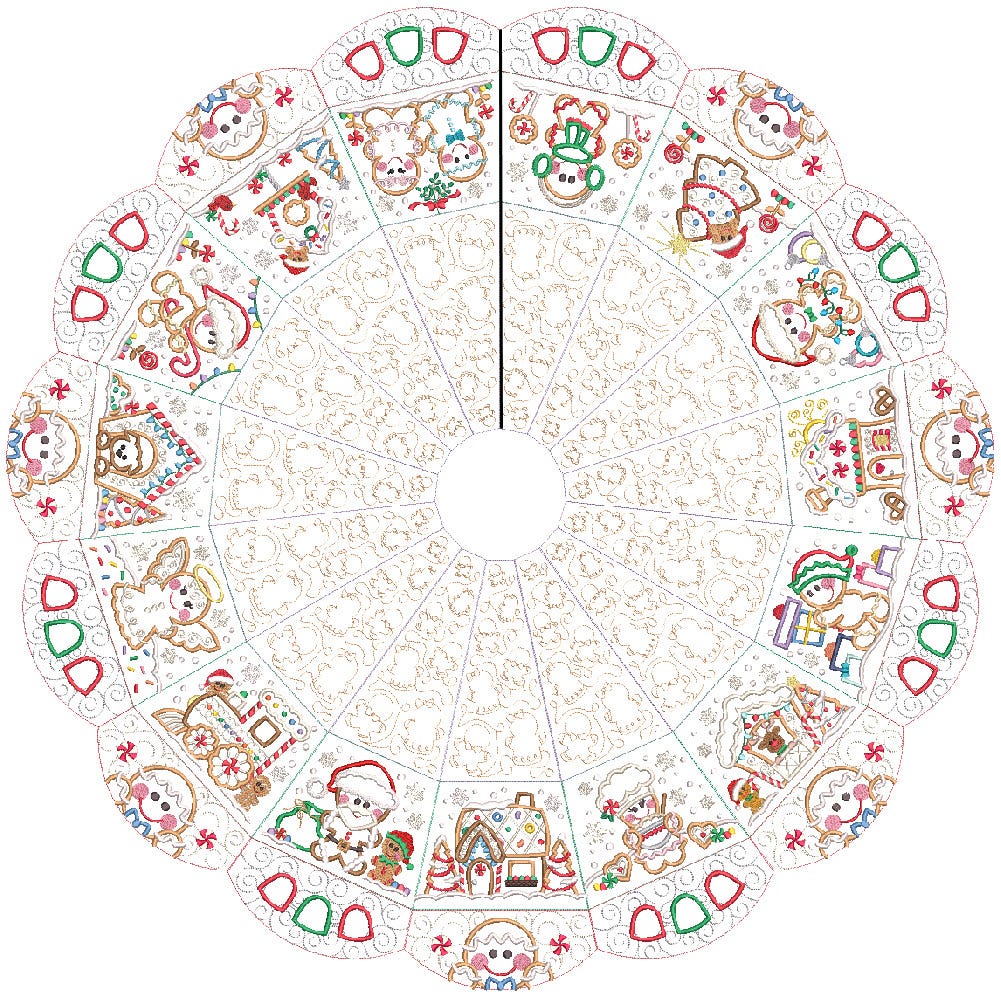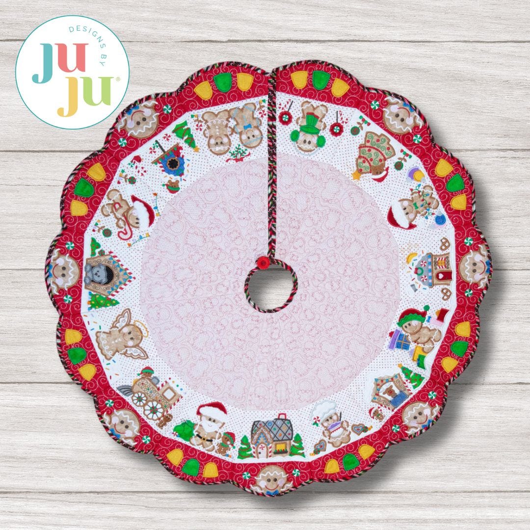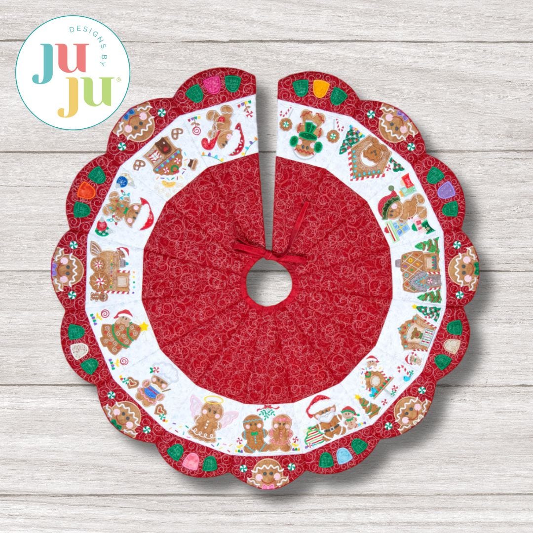 Instant heirloom! Create a beautiful Christmas tree skirt that will be a family favorite for years to come! Customize with fabrics and thread of your choice, arranging the gingerbread blocks however you'd like to make a unique project.