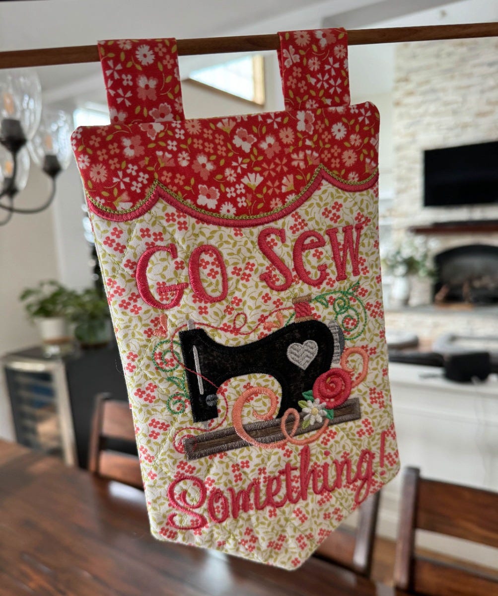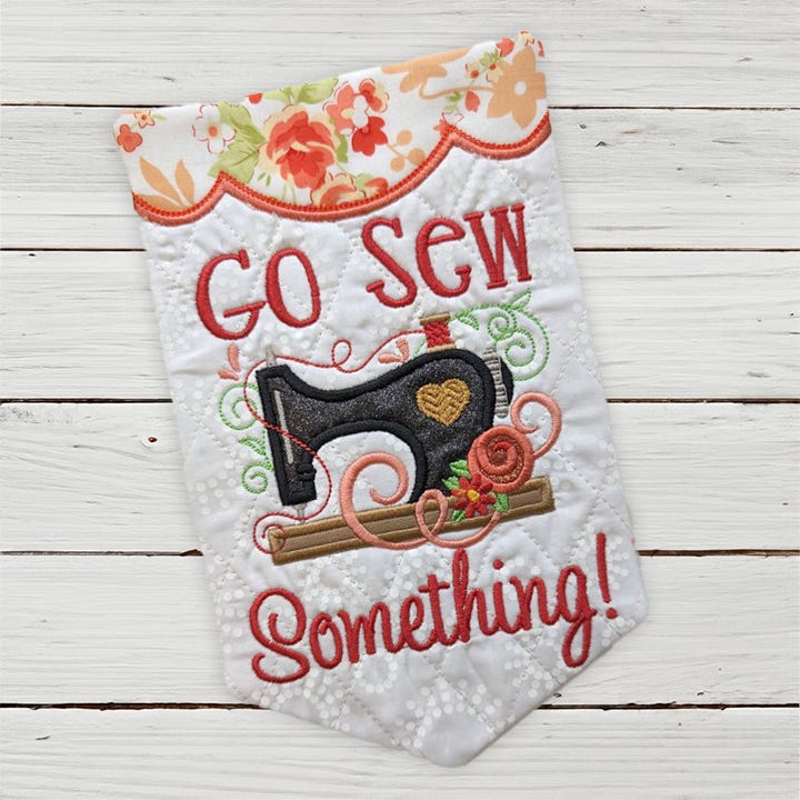 Go Sew Something... like this easy and fun in the hoop miniature wall hanging or desk decor! Go Sew Something is the slogan of our friend Becky of Power Tools With Thread.