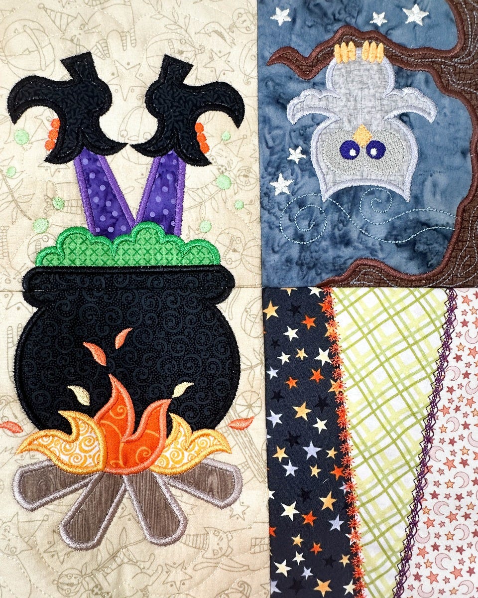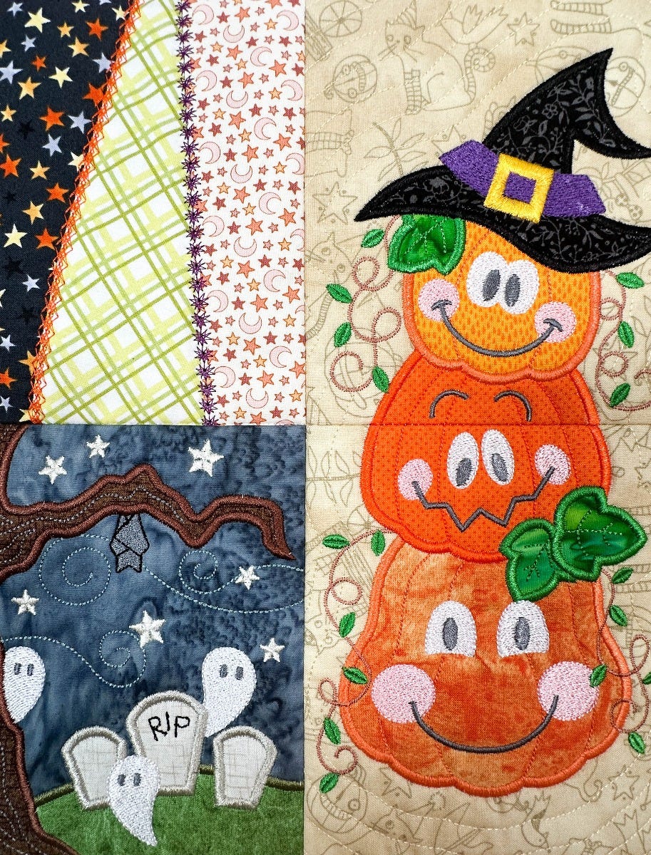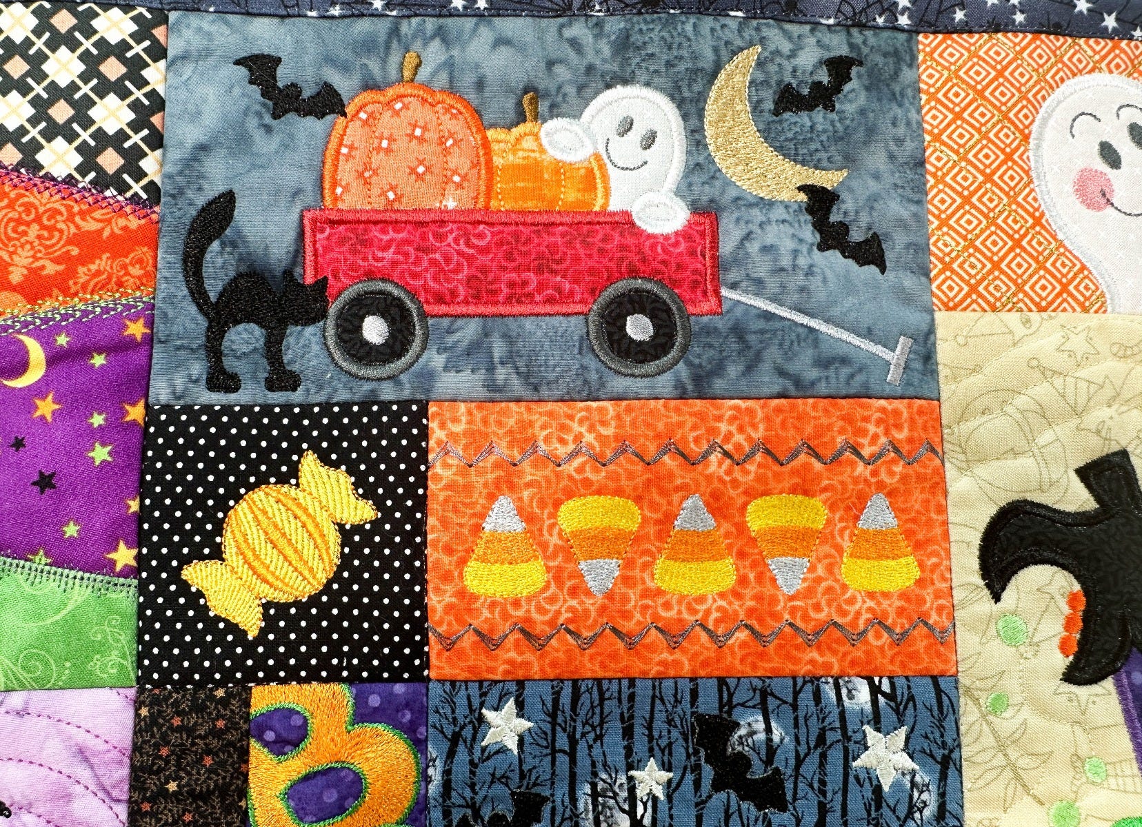 All quilting pictured (whether echo quilting, crosshatch, candy motif or pumpkin motif) are built into the block designs.