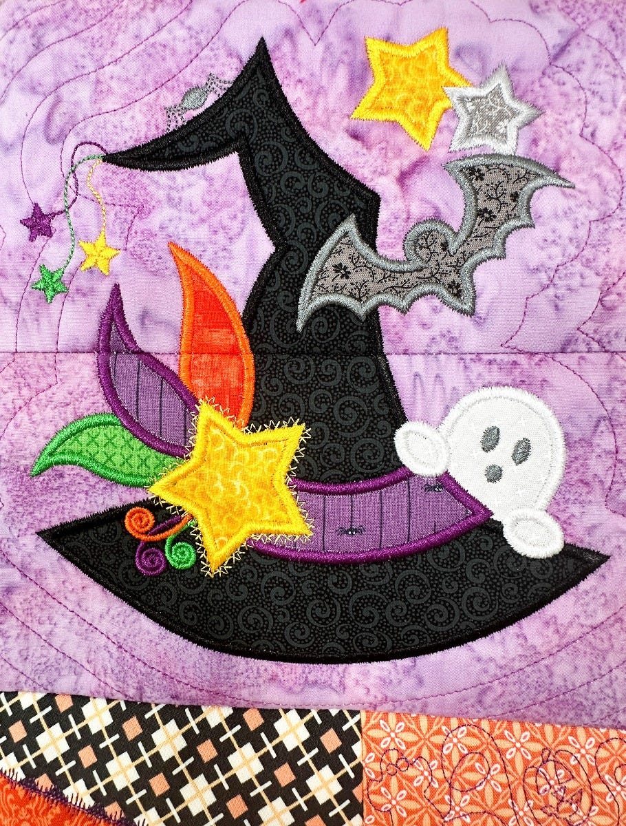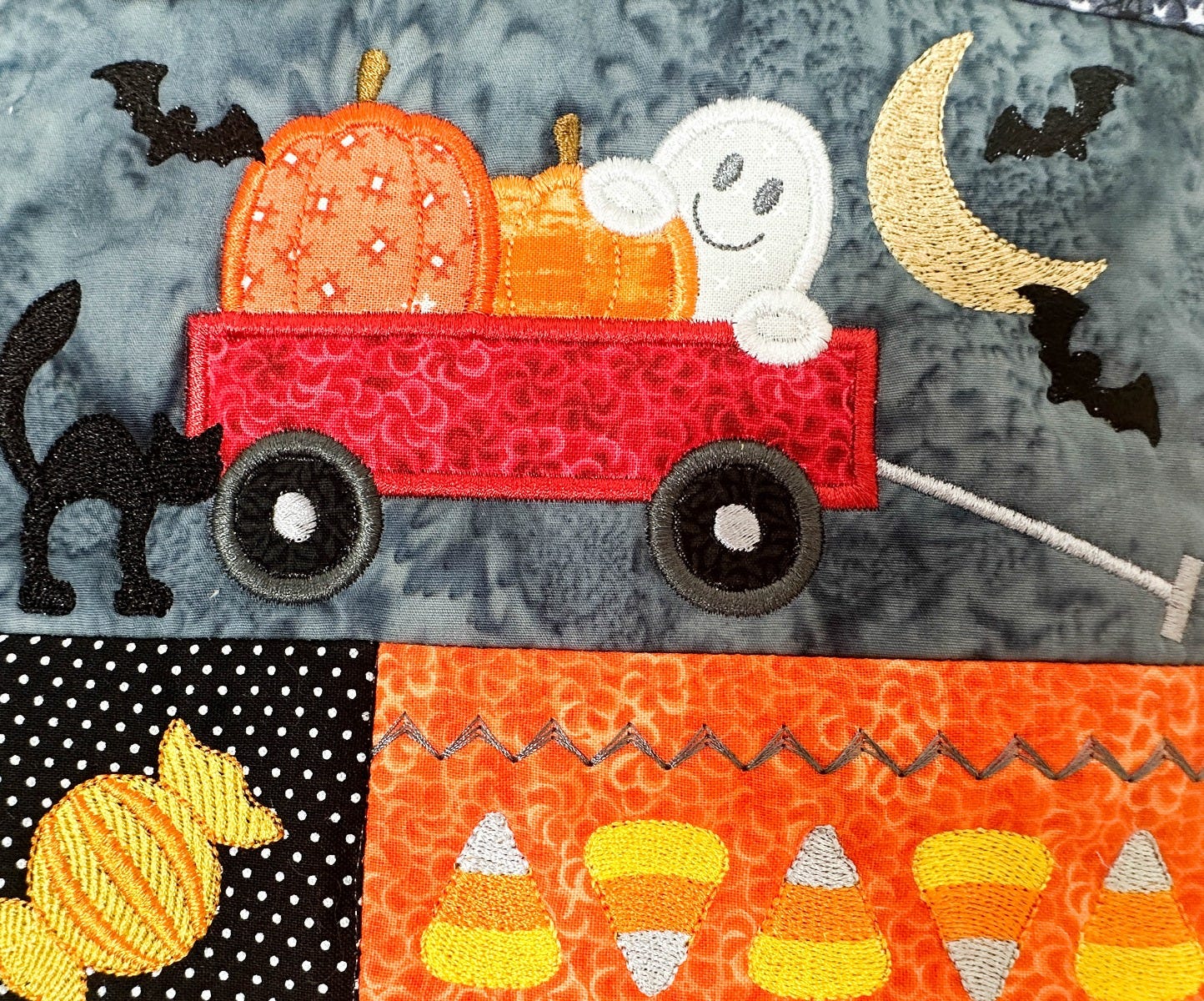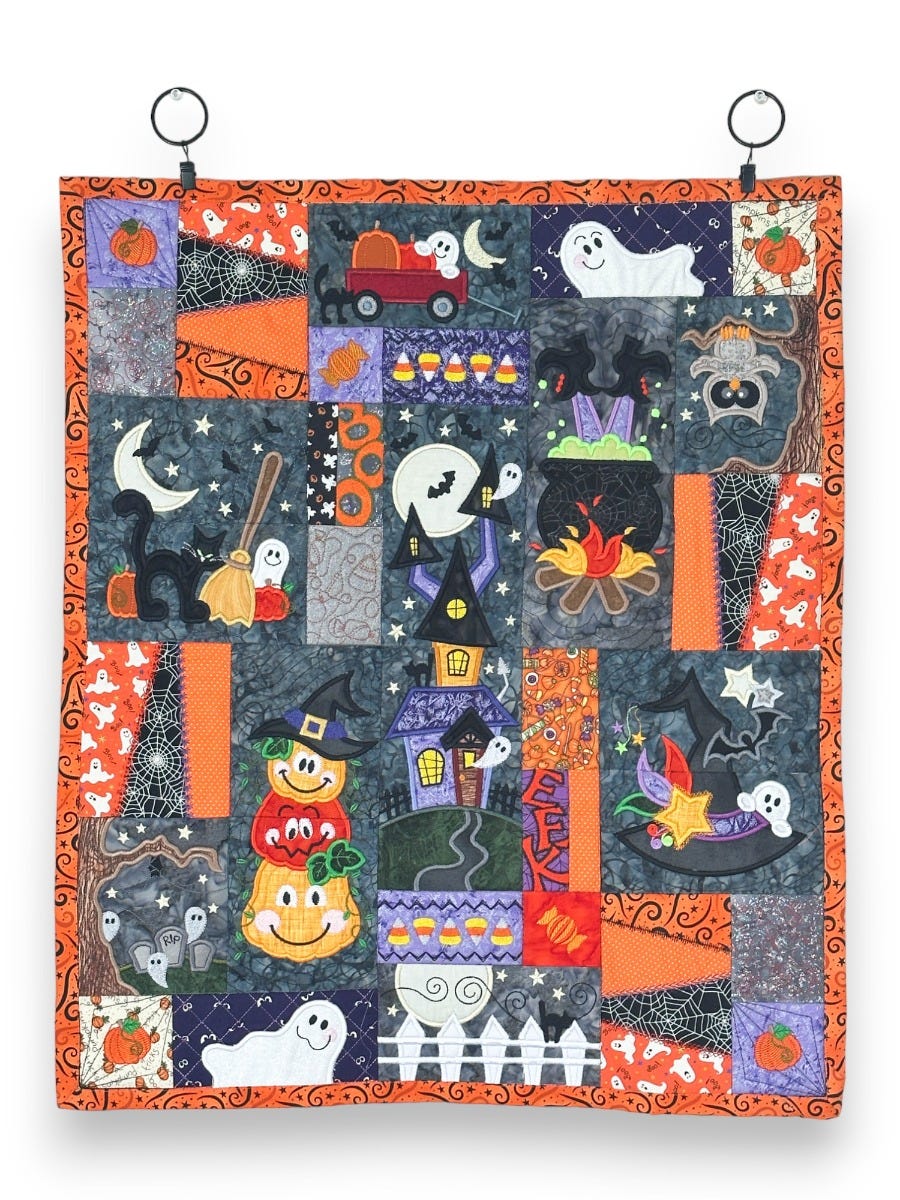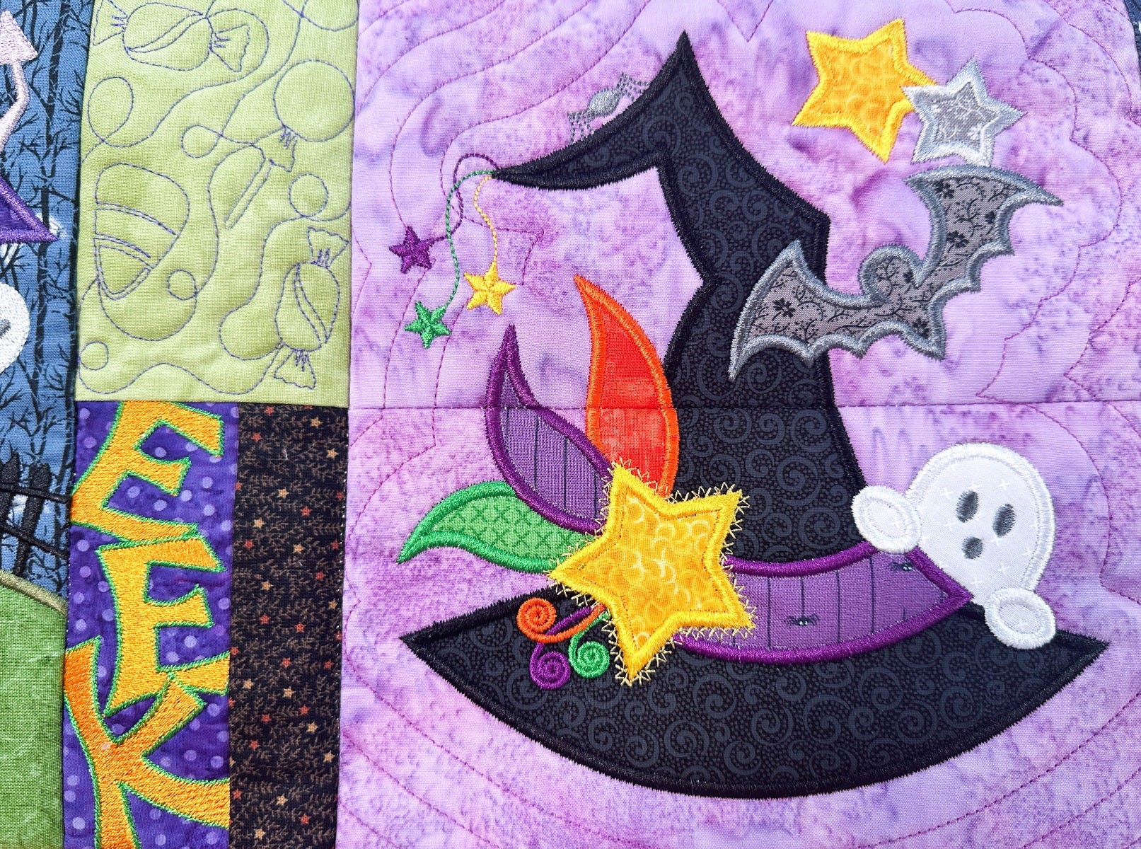All quilting pictured (whether echo quilting, crosshatch, candy motif or pumpkin motif) are built into the block designs.