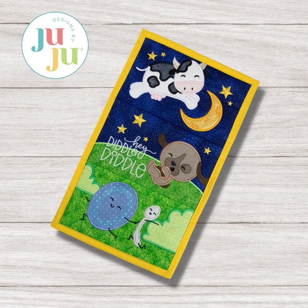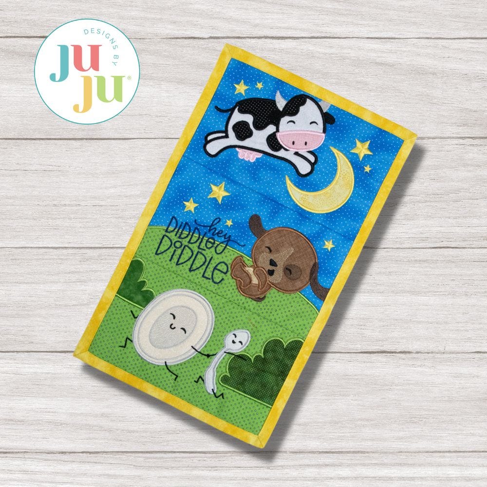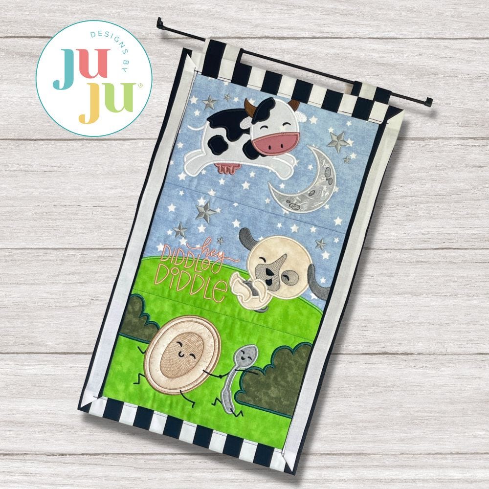 Decorate a nursery with classic rhymes using our Hey Diddle Diddle Wall Hanging! This wall hanging features an applique cow, dog, dish and spoon with embroidered text.