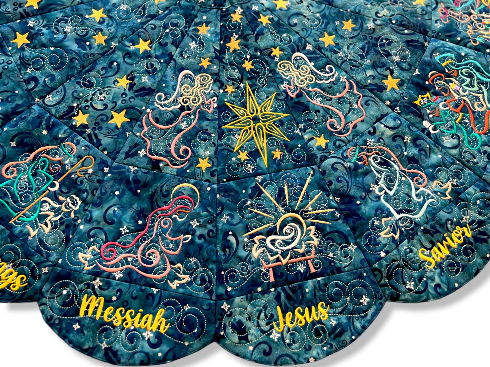 Instant heirloom that celebrates the true reason for the season! Create a beautiful Nativity tree skirt that will be a family favorite for years to come! Customize with fabrics and threads of your choice.