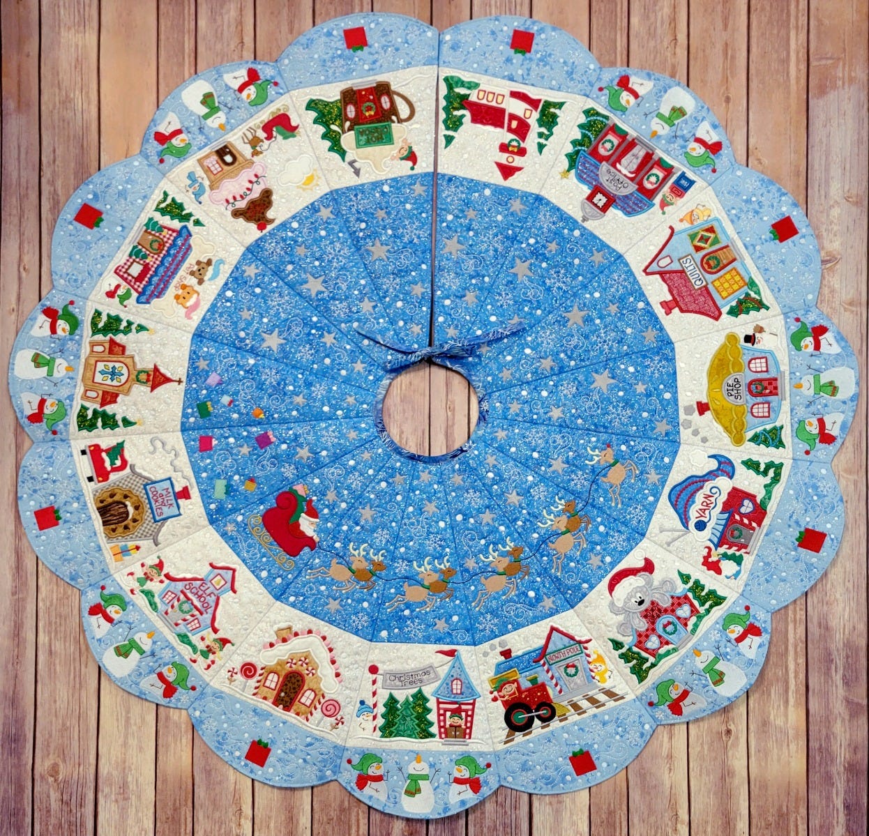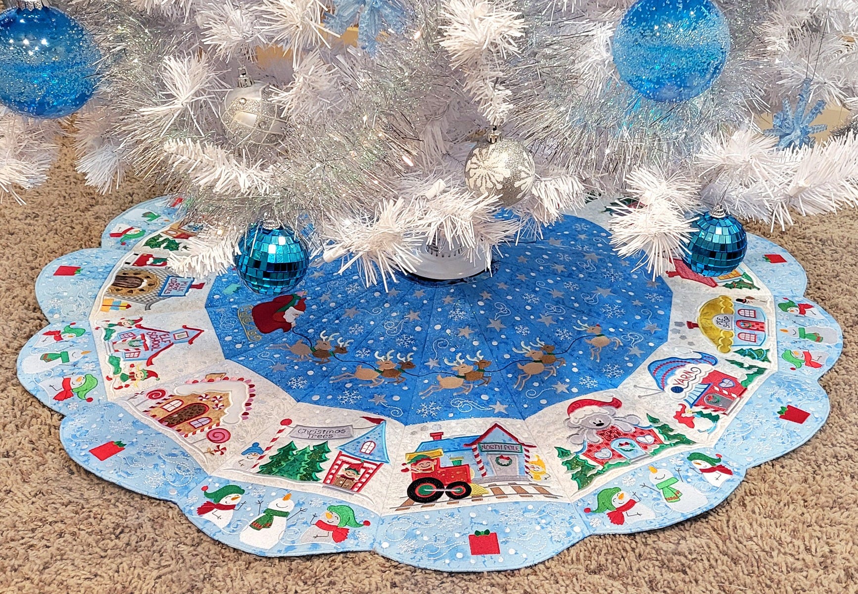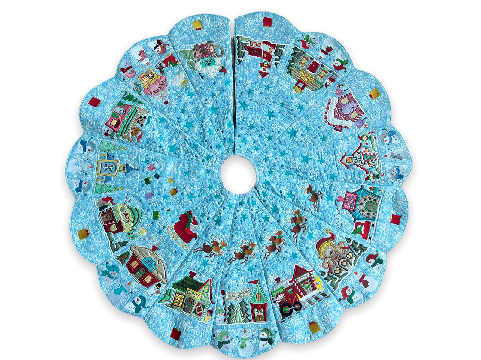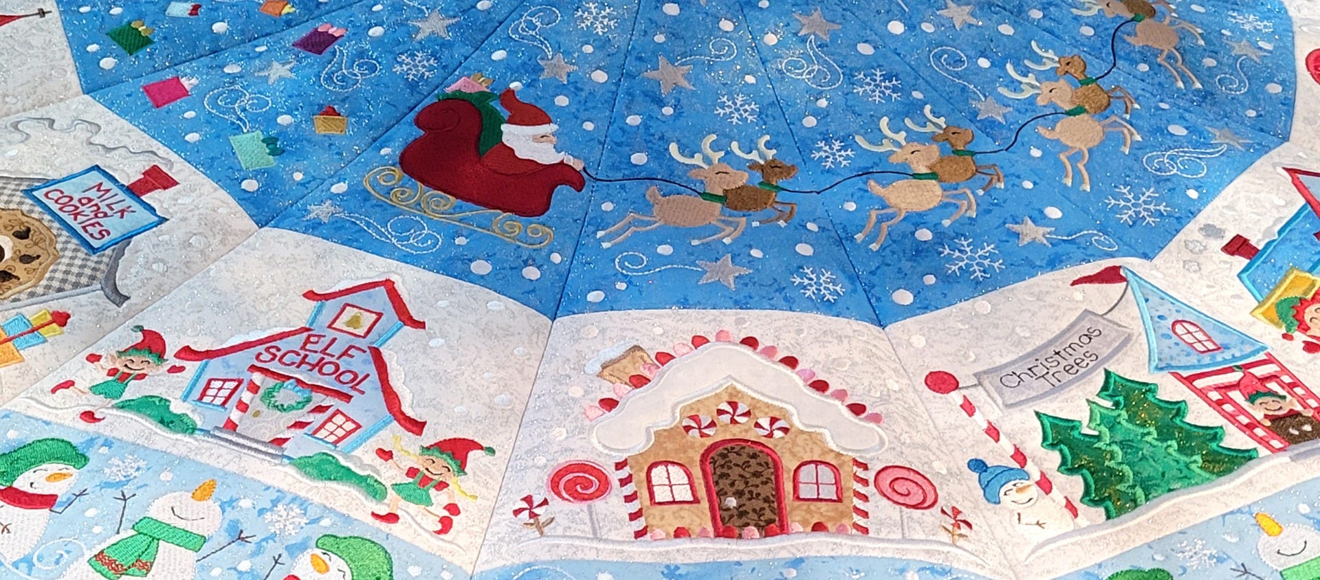 A SPECIAL THANK YOU to Becky Thompson of Power Tools With Thread for her fantastic YouTube Video Tutorials! Here is her playlist for tutorials making our North Pole Village Tree Skirt.