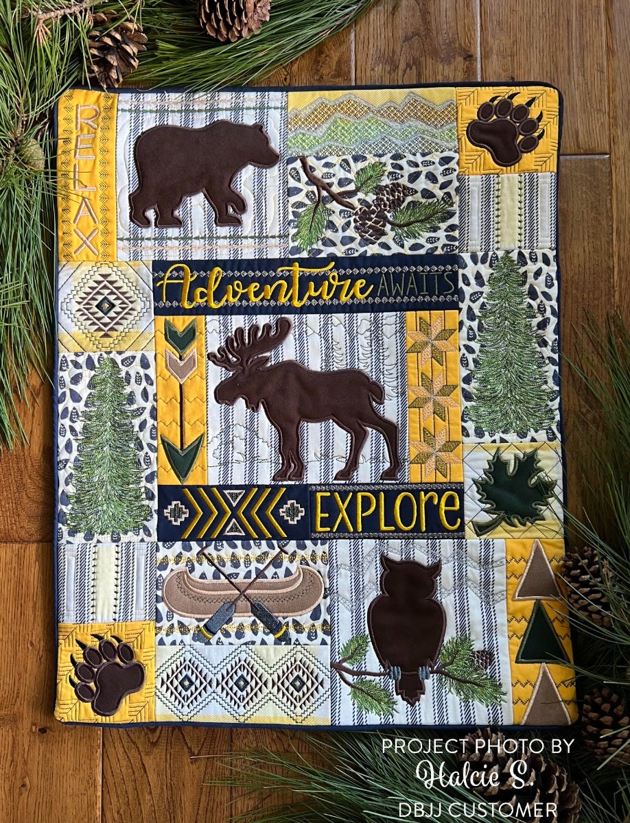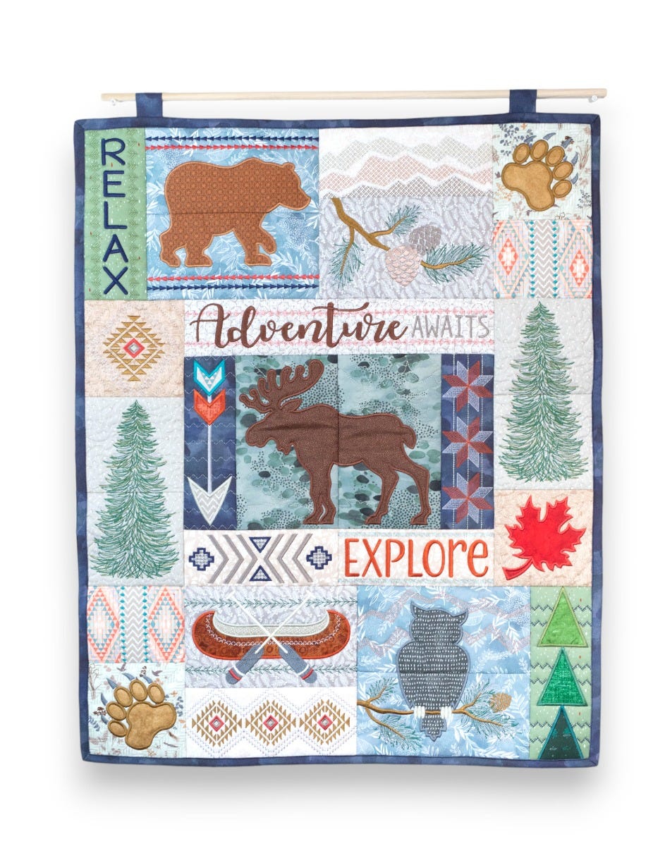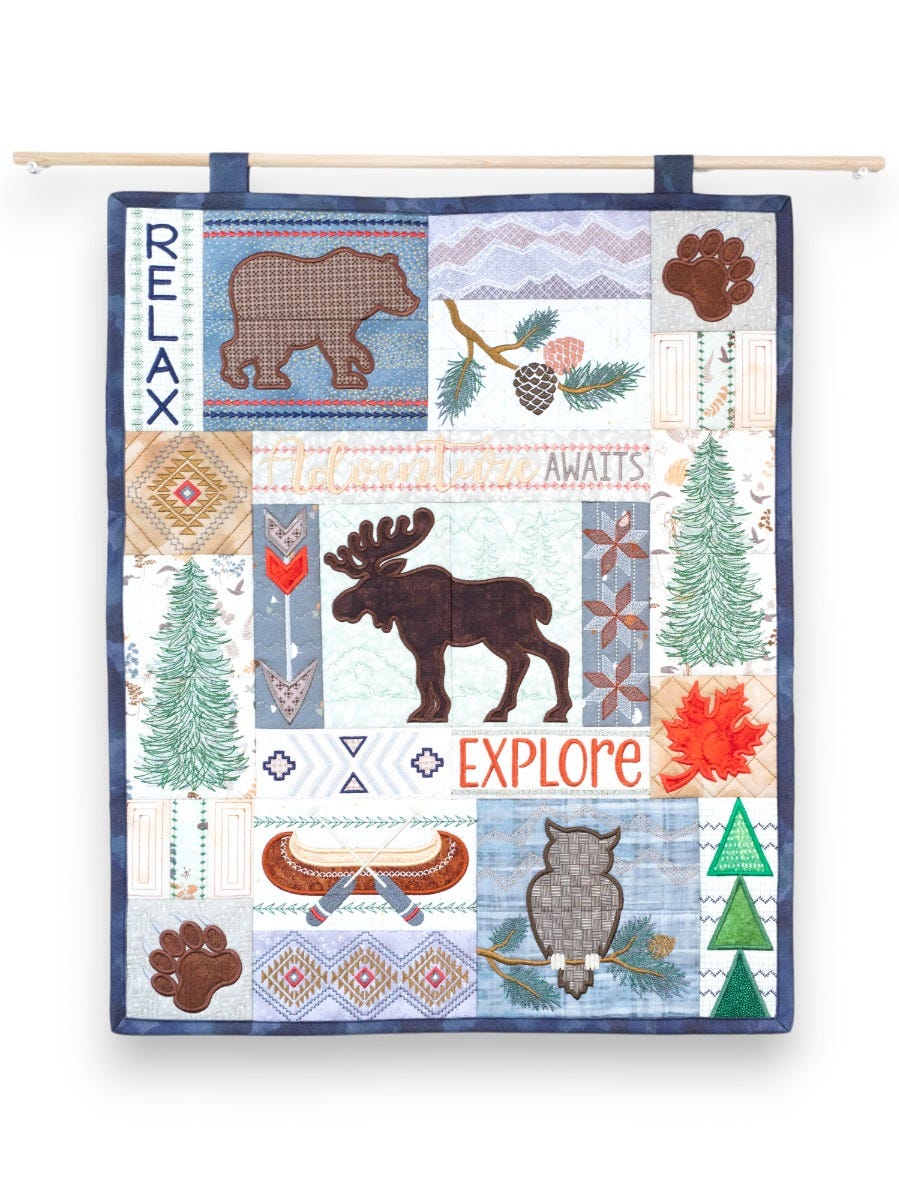 This project features six large images that are broken up over two blocks, allowing those limited to a 5x7 or 6x10 hoop to be able to create bigger scenes! For machines with larger stitch fields, BONUS FILES are included so those two-hooping images can be stitched as one block.