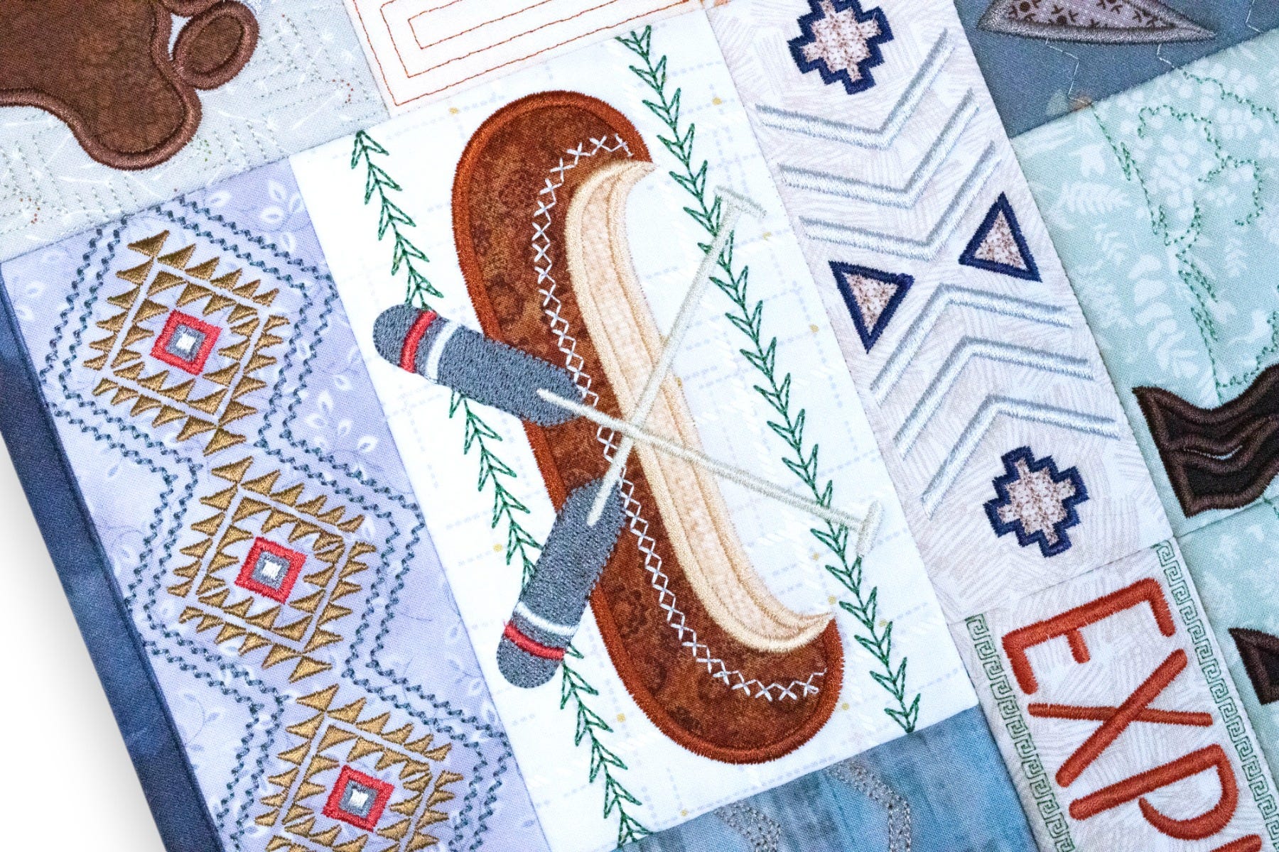 All quilting pictured (whether echo quilting, stipple, crosshatch or motif) are built into the block designs.