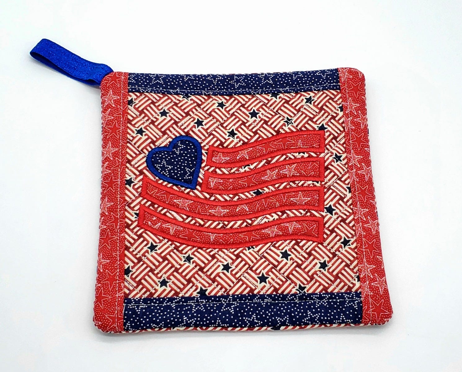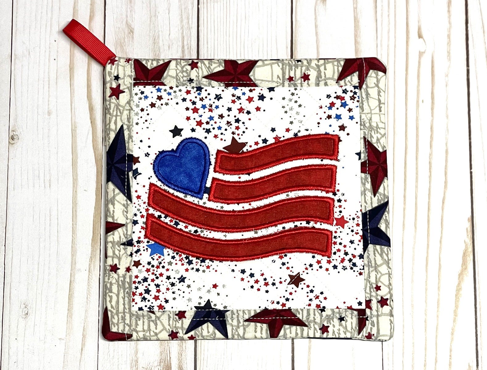 Share your love for all things red, white, and blue with the new Patriotic Flag Potholder 2! Customize the pot holder with fun colors and fabric patterns, or coordinate with other ITH patriotic projects!