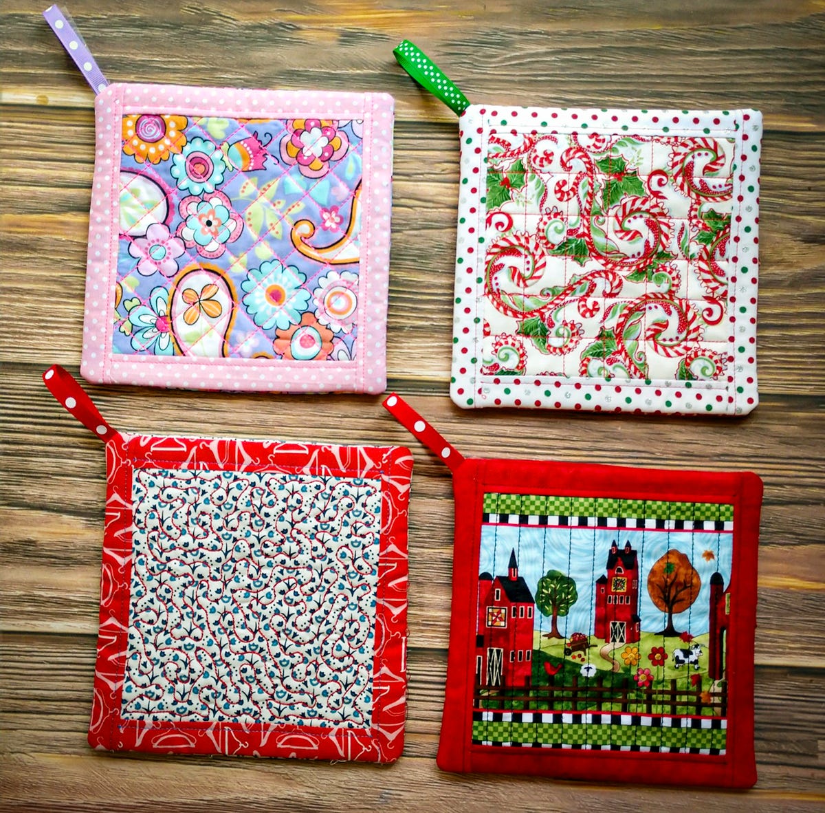Simple quilted potholders made completely in the hoop!