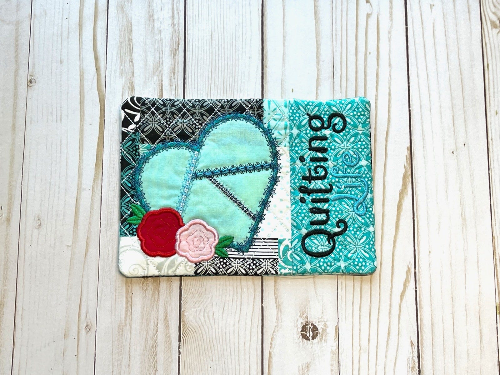 Mug rugs are made completely in the hoop. Detailed, step by step photo instructions are included in your download.