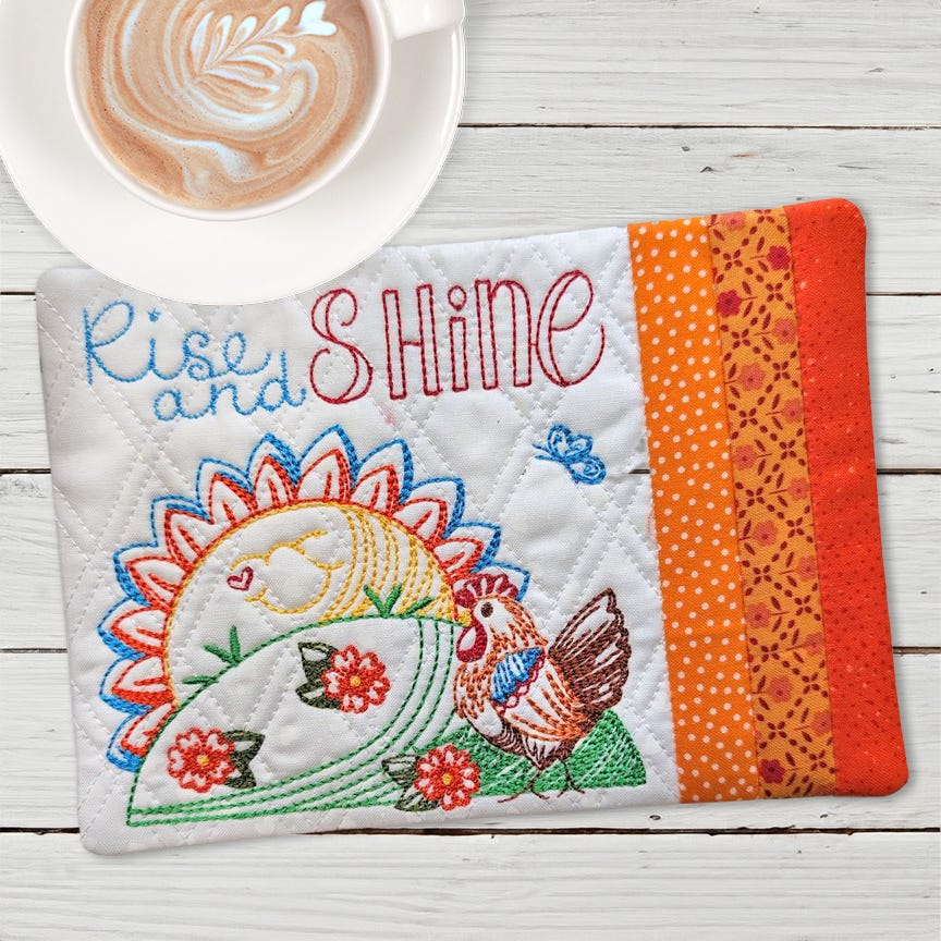 Time to rise and shine with a cup of coffee! This mug rug features bean stitch lettering and details for a sweet vintage look.