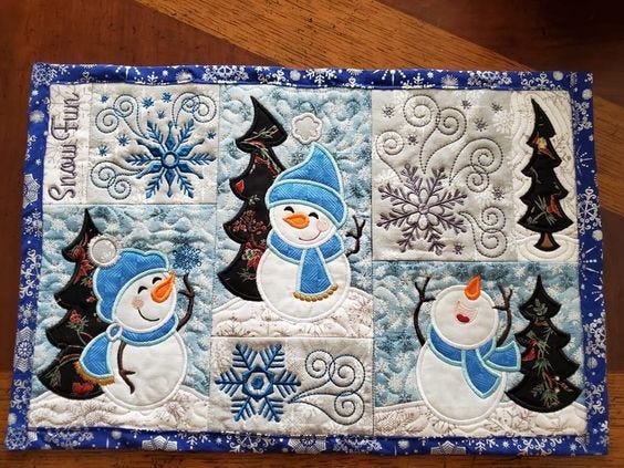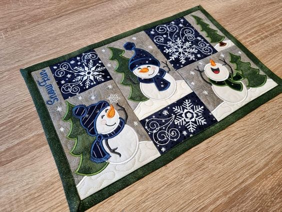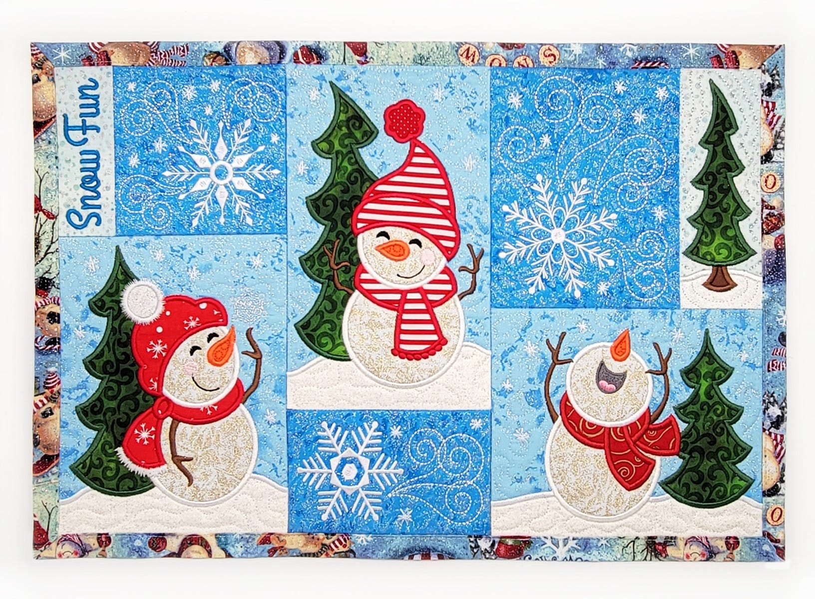 Customize the placemat with fun colors and fabric patterns, or coordinate with other ITH Snowman projects!