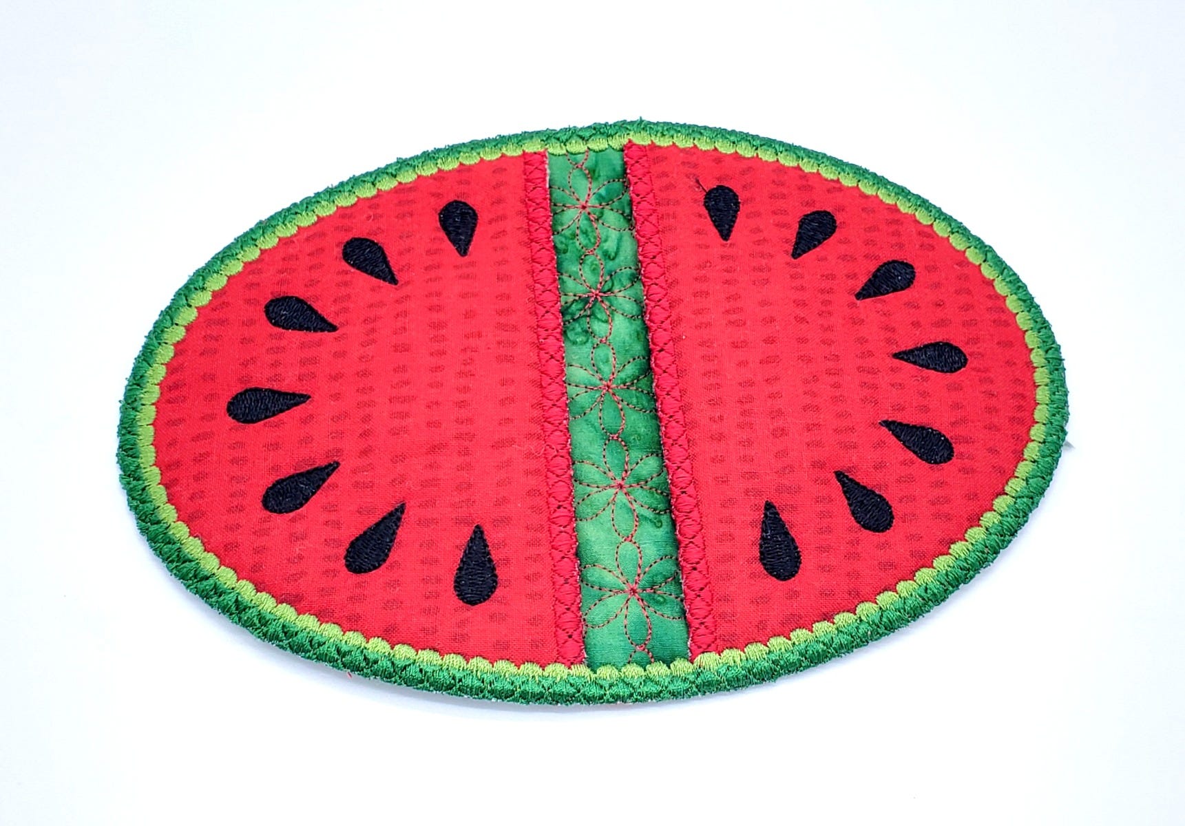 What could be better to remind you of summer than delicious watermelon? You have to add the new Watermelon Potholder to your kitchen as a reminder of all things bright, cheery, and full of summer fun! Customize the pot holder with fun colors and fabric patterns, or coordinate with other ITH patriotic projects!