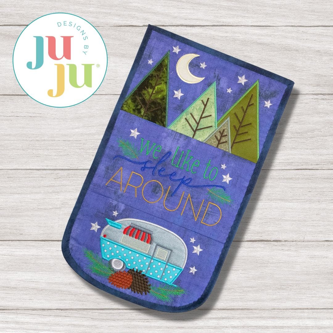 Celebrate the mobile life with our We Like to Sleep Around Wall Hanging! This wall hanging features applique mountains and camper with embroidered text and design elements.