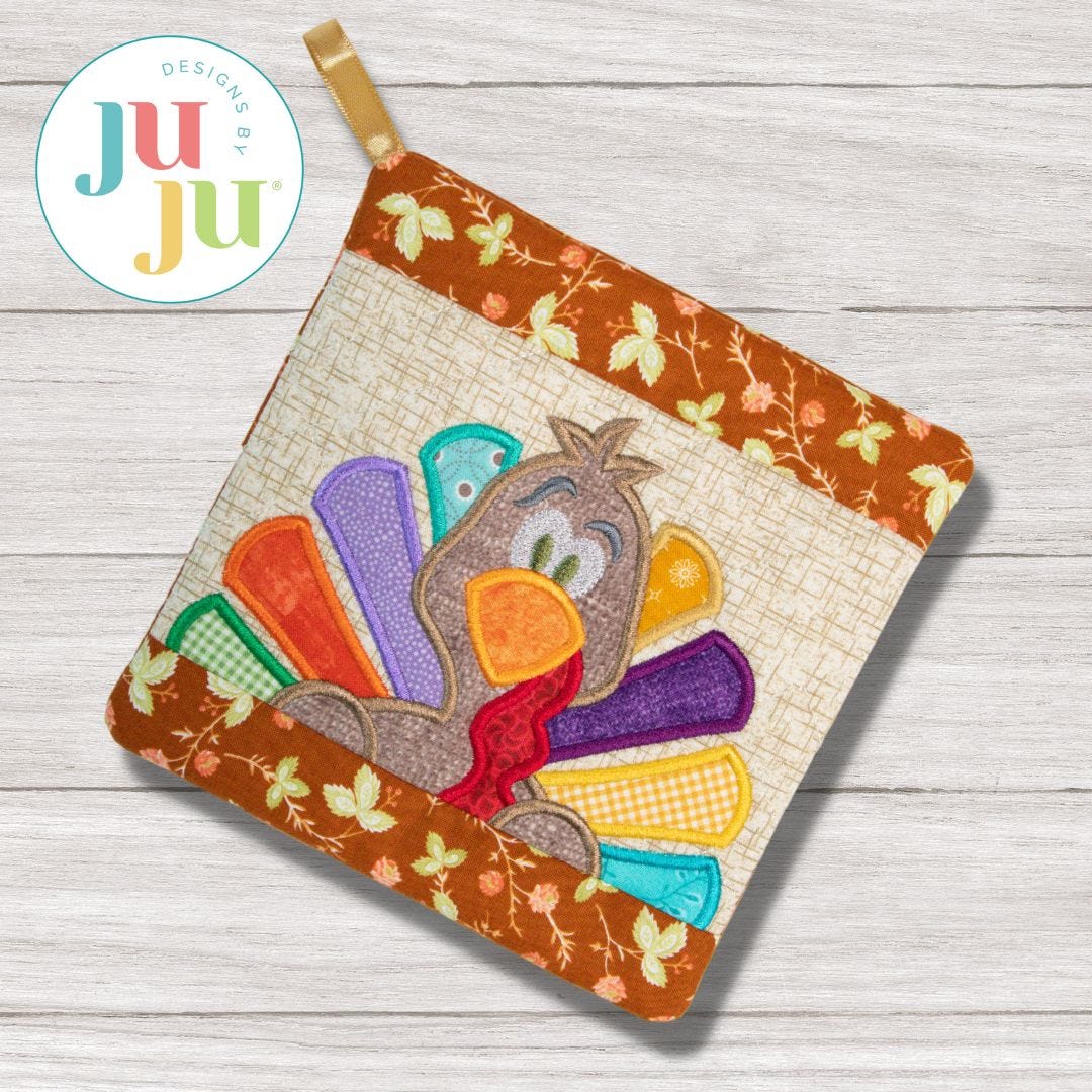 Get your kitchen ready for Thanksgiving festivities with our Whimsical Turkey Pot Holder! Have fun with fabrics --this potholder features a turkey with eight different fabric feathers!
