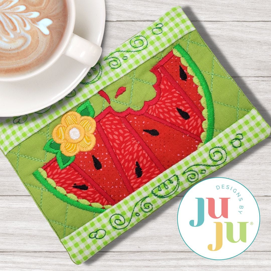 Celebrate the season with our Whimsical Watermelon Mug Rug! Available in five hoop sizes: 5x7 hoop, 6x10 hoop, 7x12 hoop, 8x12 hoop, and 9.5x14 hoop. Pick fun fabrics to coordinate with other ITH projects.