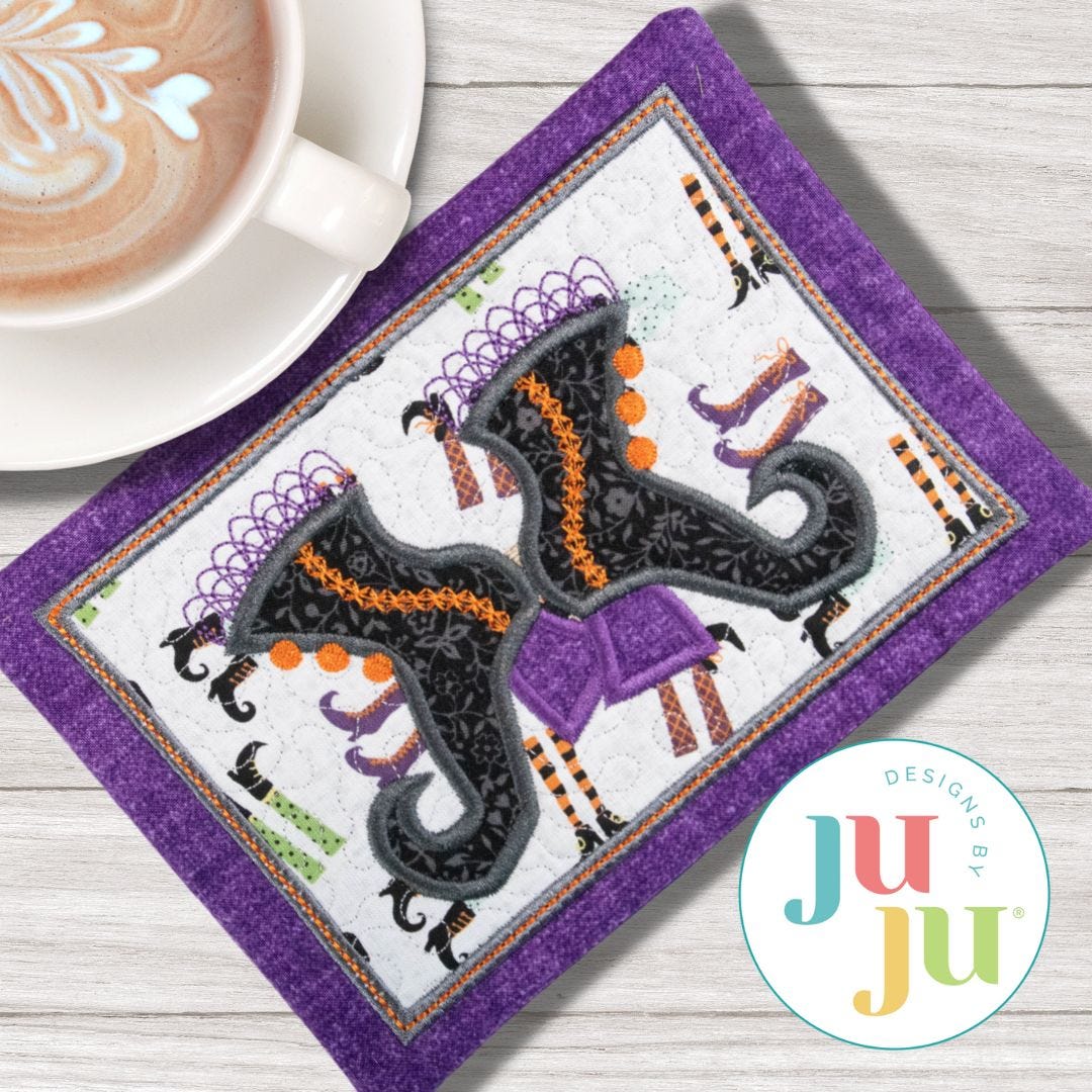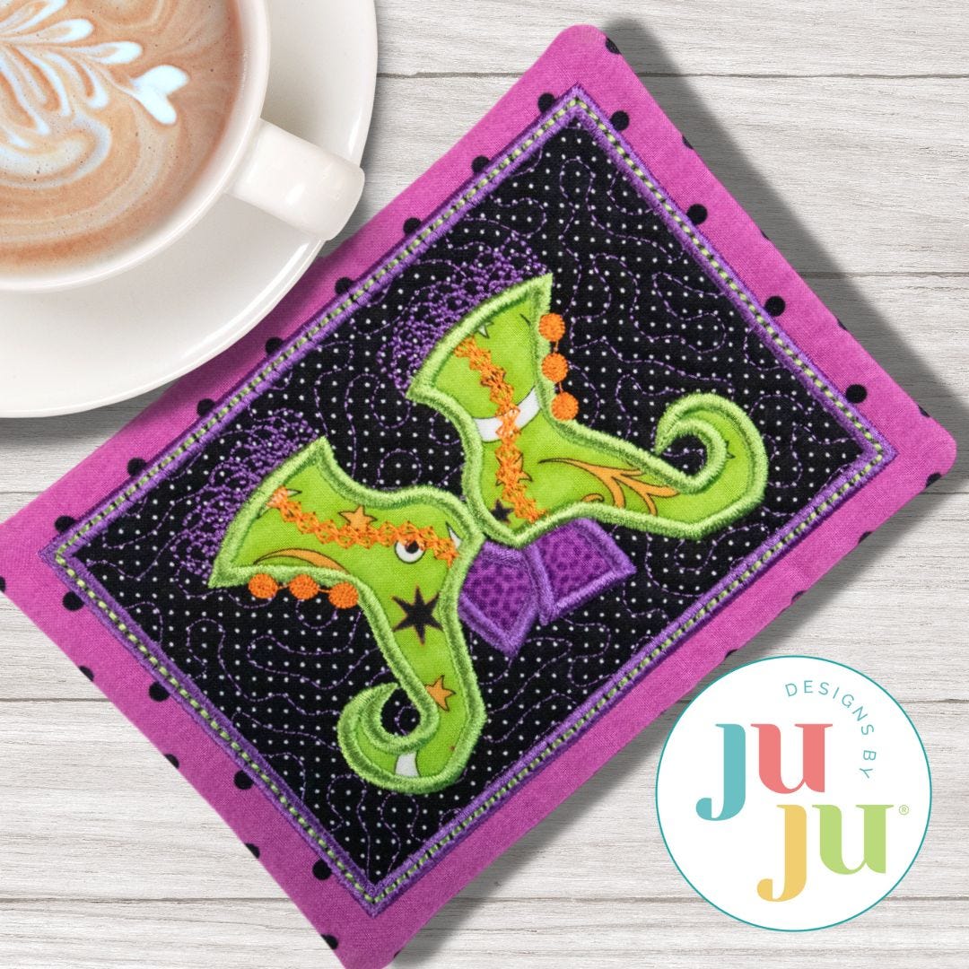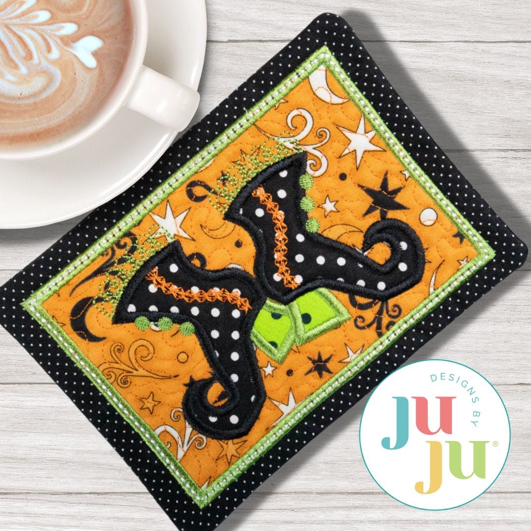 Decorate your living room for Halloween with our Witch Boots Mug Rug! Available in five hoop sizes: 5x7 hoop, 6x10 hoop, 7x12 hoop, 8x12 hoop, and 9.5x14 hoop. It features applique boots.