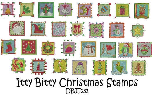 Here is a HUGE set of 30 darling itty bitty Christmas designs applicable for soooo many different projects. Here are just a few ideas for these>1.5 x 1.5 inchdetailed little designs: name tags, gift tags, gift bags, Christmas cards, pins, magnets, Christmas countdown advent calendar (more than enough for all the days of December!!), mini ornaments, napkins, placemats, childrens clothing, adults clothing, blankets..let your imagination soar! TIP: These are small designs..so use a new needle and stabilize well for these precious little designs.