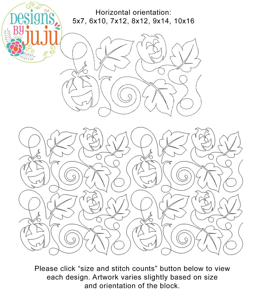 Please note: Both the scale of each pattern and arrangement of the motifs may vary based on the hoop size. Please click the "Size and Stitch Count" button to view the artwork for each size.