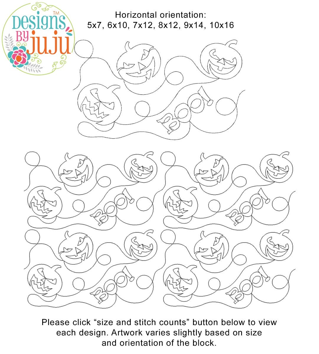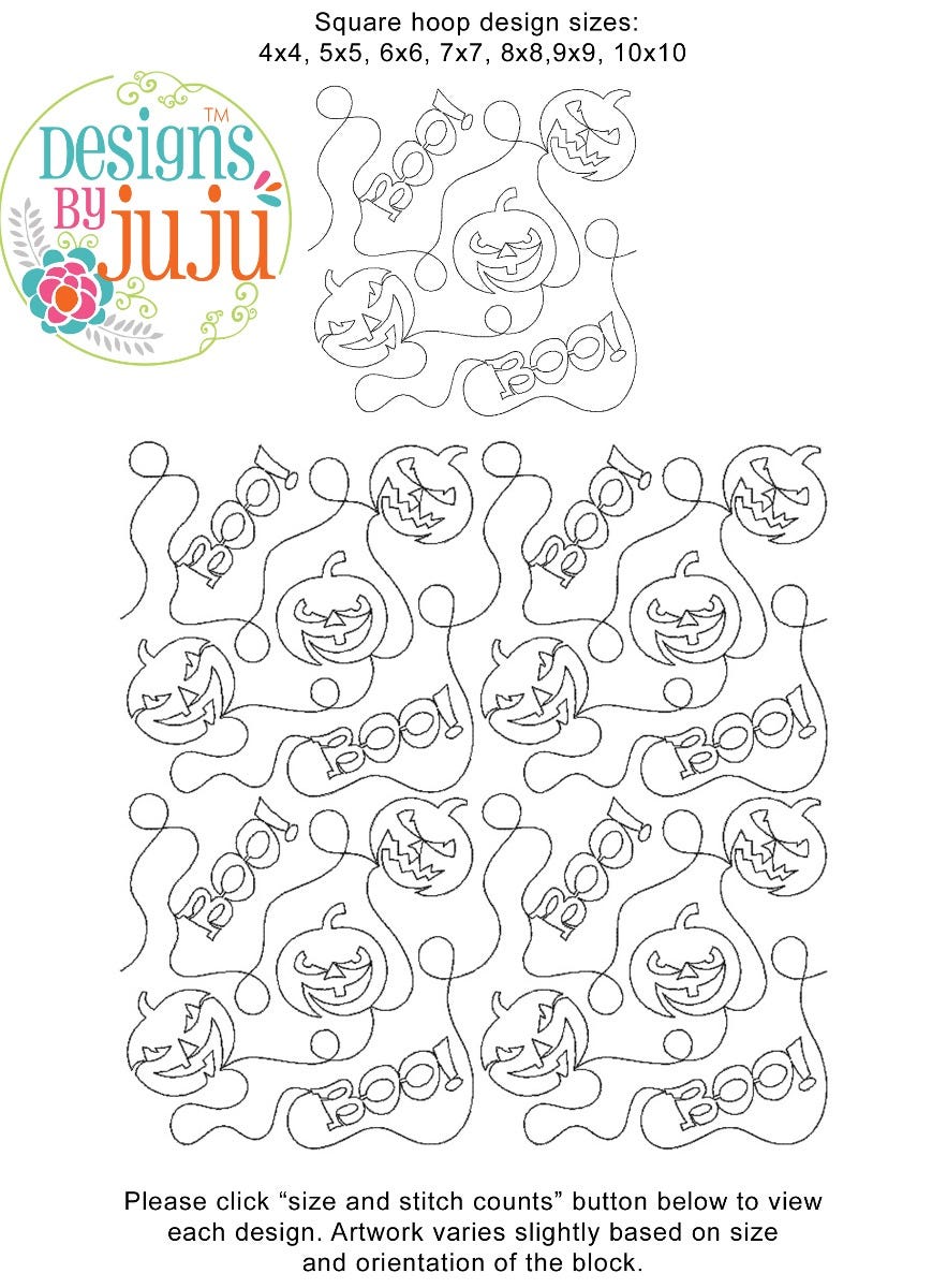 Please note: Both the scale of each pattern and arrangement of the motifs may vary based on the hoop size. Please click the "Size and Stitch Count" button to view the artwork for each size.