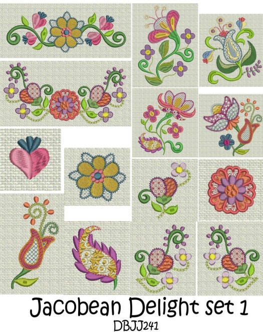6 designs for the 5x7 hoop; plus 8 complementing designs for the 4x4 hoop