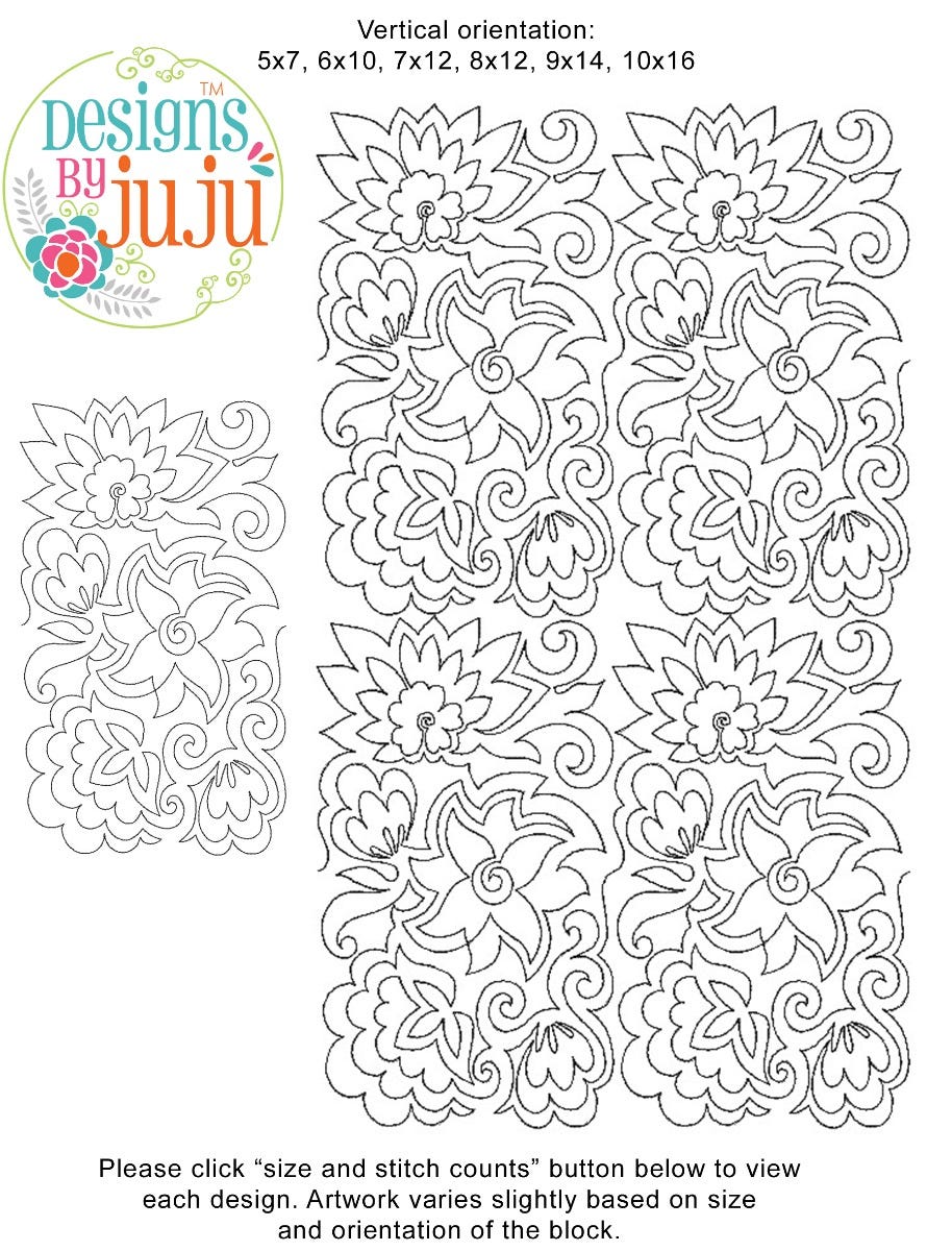 Includes continuous line single run End-to-End Quilting™ embroidery design as shown.