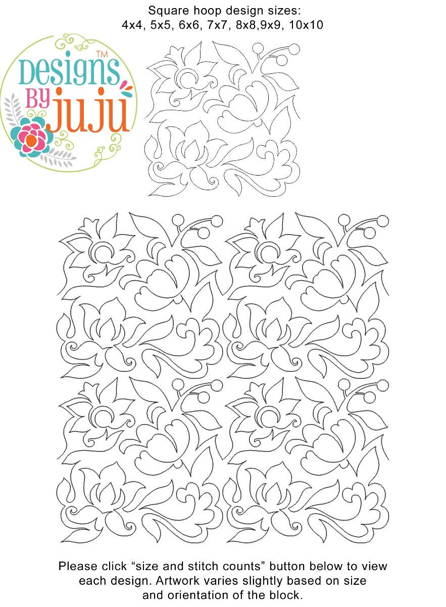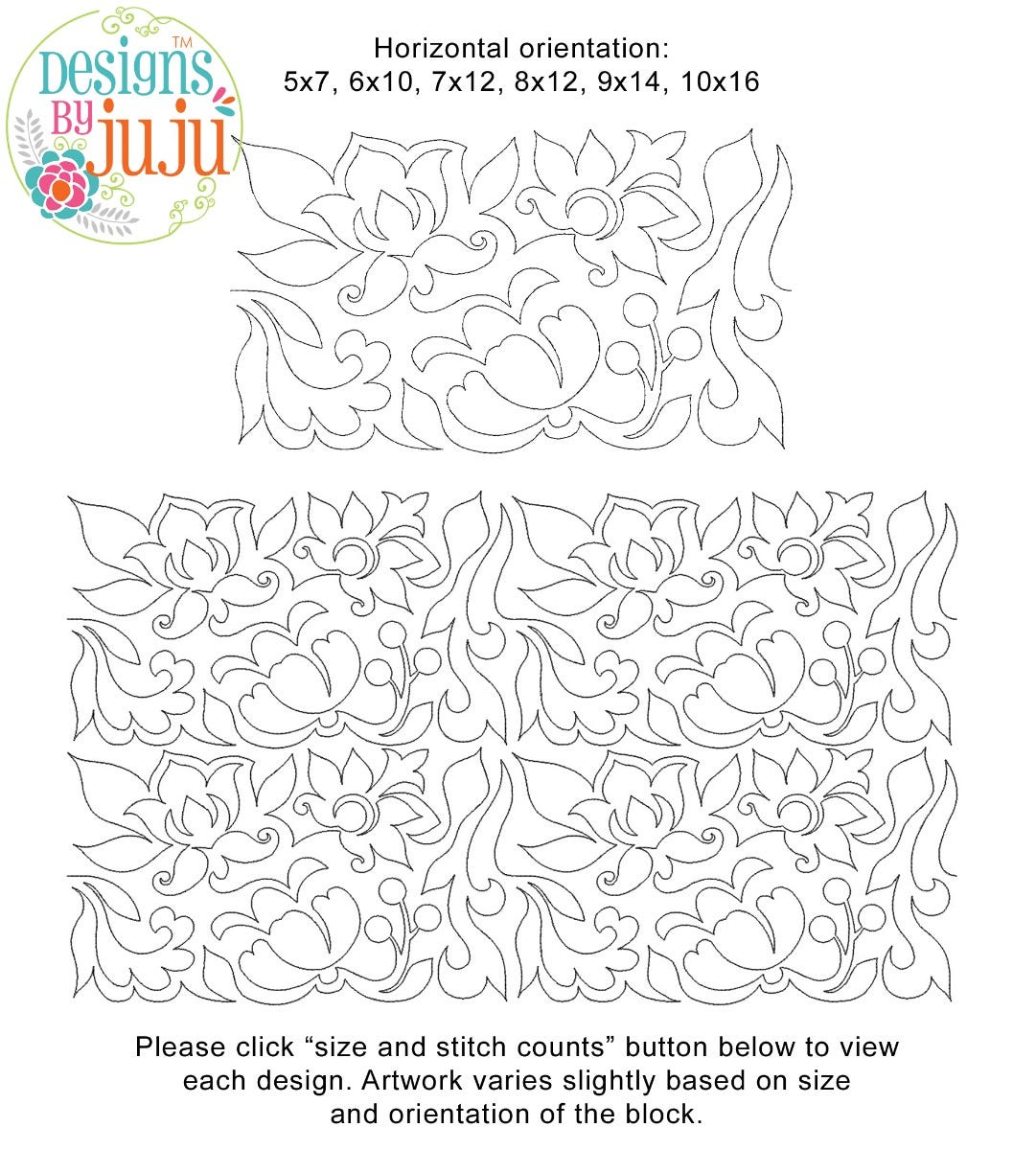 Please note: Both the scale of each pattern and arrangement of the motifs may vary based on the hoop size. Please click the "Size and Stitch Count" button to view the artwork for each size.