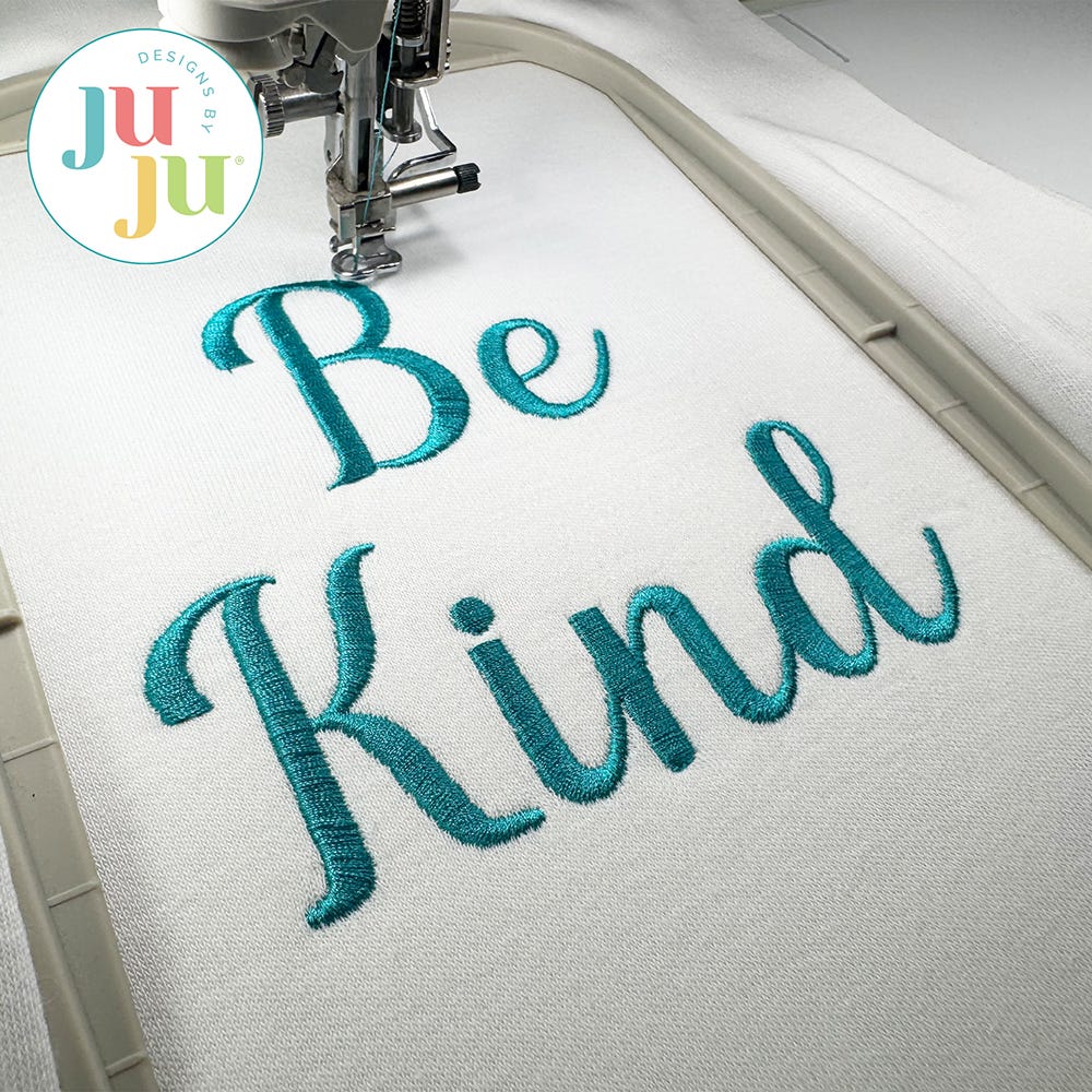 Designs by JuJu recommends the user friendly Embrilliance embroidery editing software to type out fonts in BX format, combine/merge designs, personalize and customize projects and more! Check out their programs Essentials, Enthusiast, StitchArtist , and Thumbnailer to learn more about their other useful, fun and easy features!