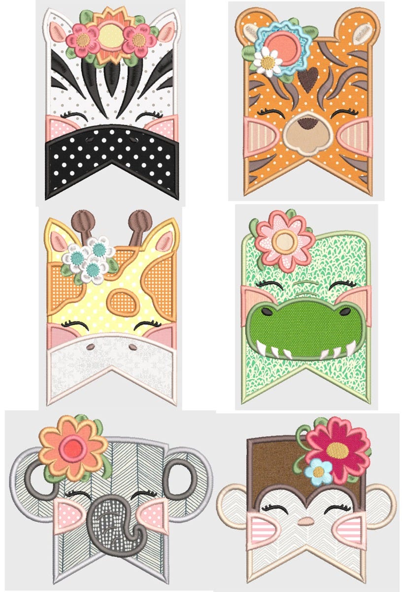 6 girl jungle animal designs available in applique and ITH flags!