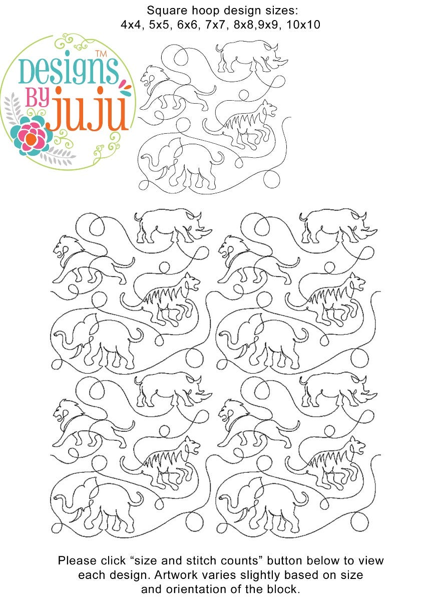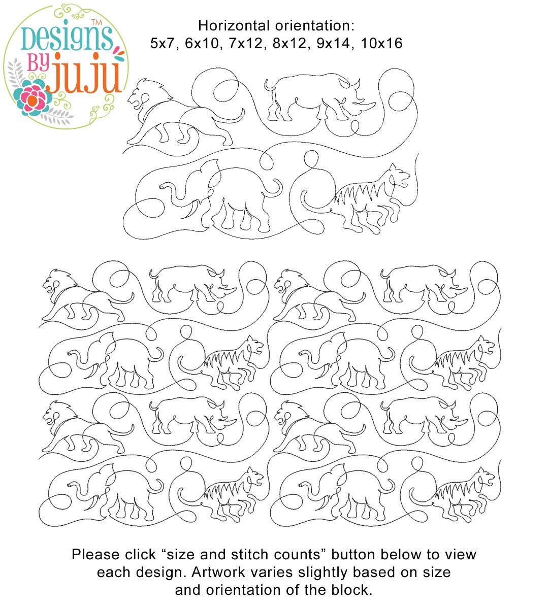 Please note: Both the scale of each pattern and arrangement of the motifs may vary based on the hoop size. Please click the "Size and Stitch Count" button to view the artwork for each size.