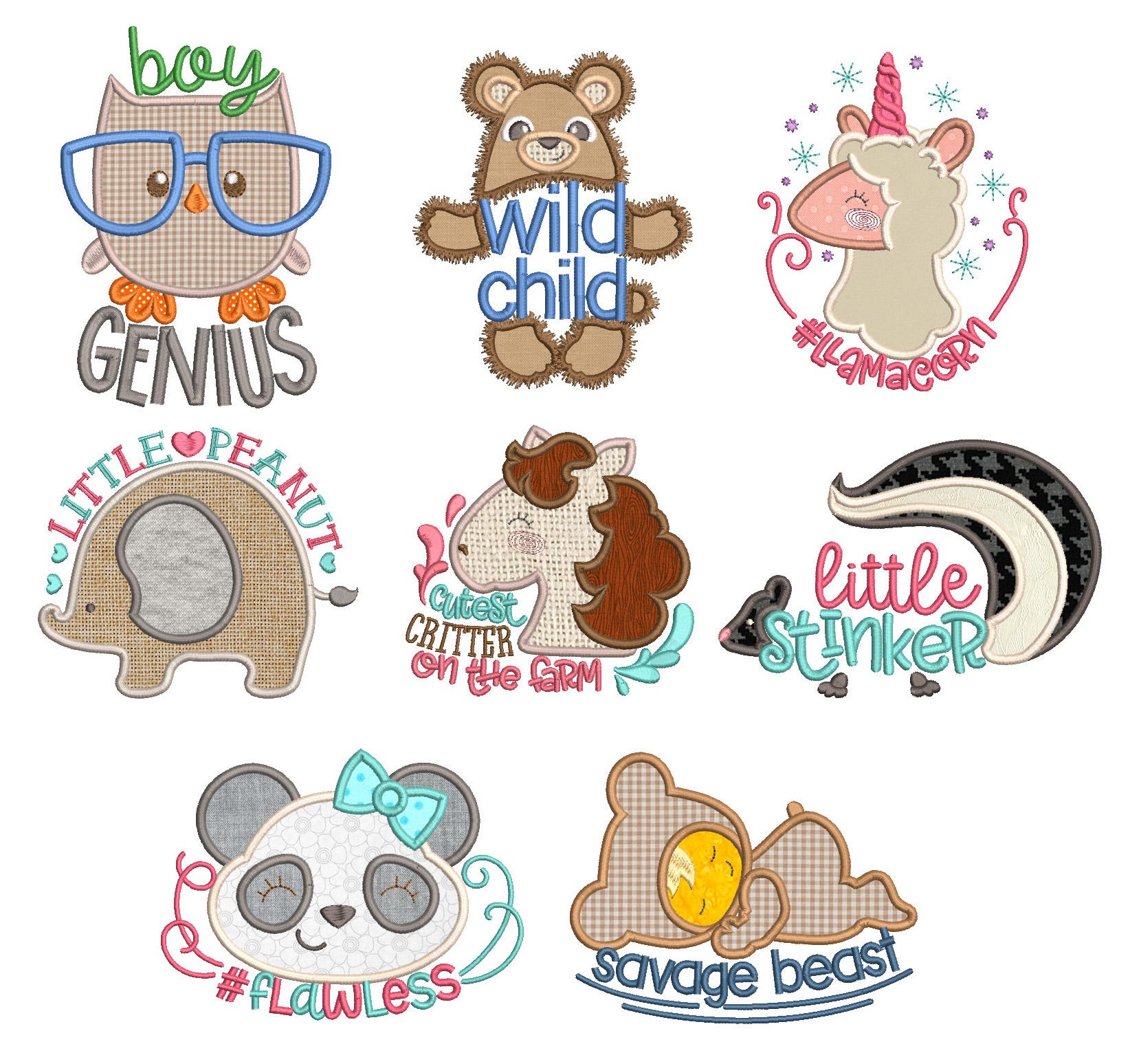 8 MORE super fun kids animal word art applique embroidery designs