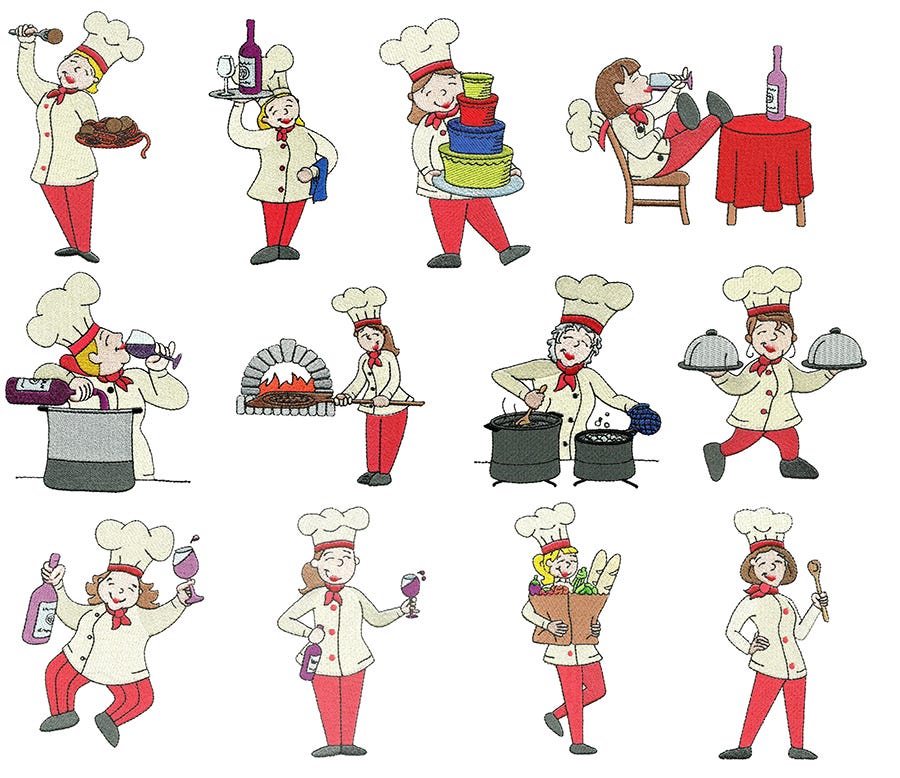 If you loved our Bon Appetit Chefs design sets, you will just love our new set, Kiss the Cook Female Chefs. More cuteness and whimsy! Perfect for the cooks in your life!Ā
