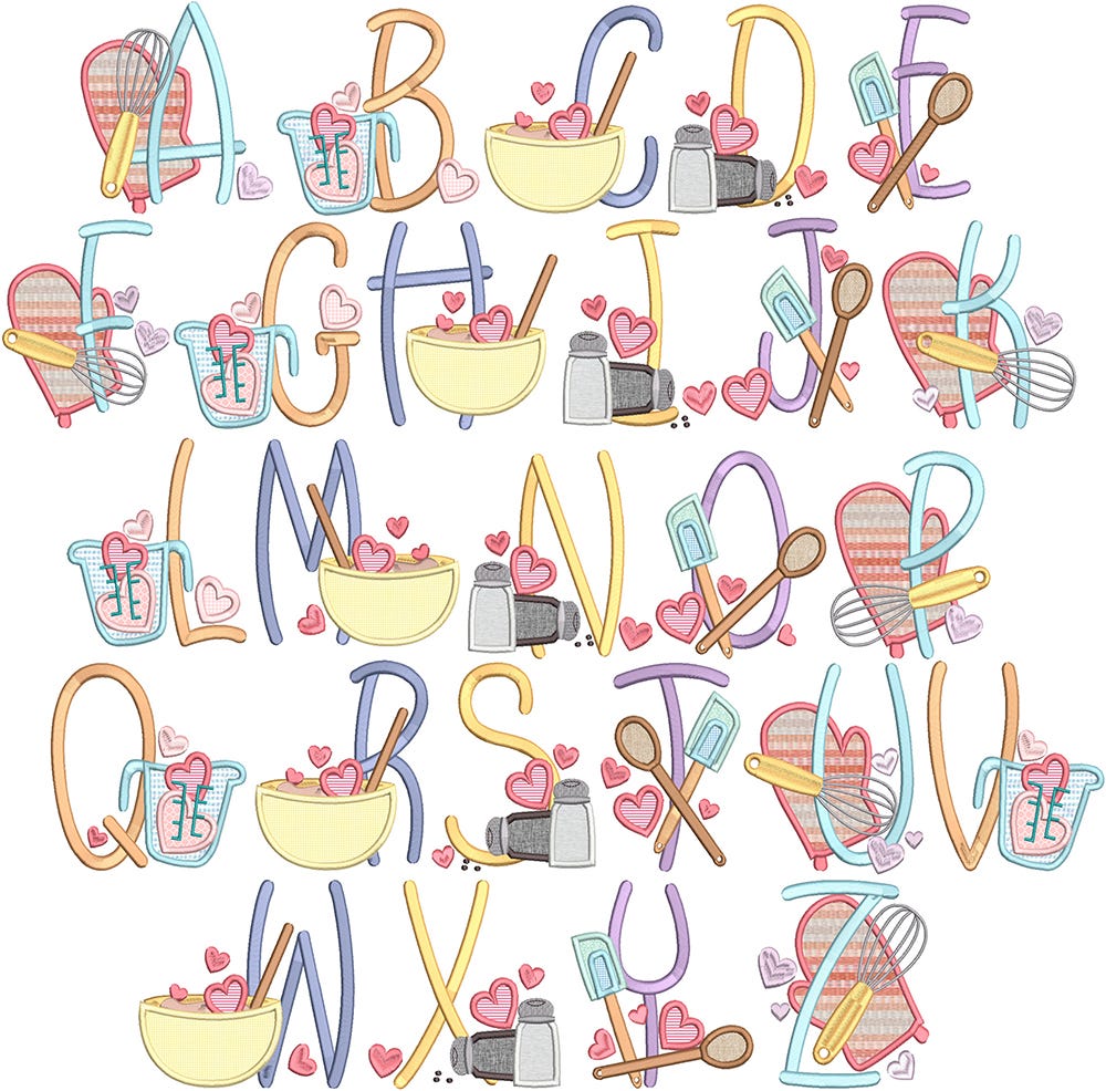 *Please note that this alphabet includes applique components