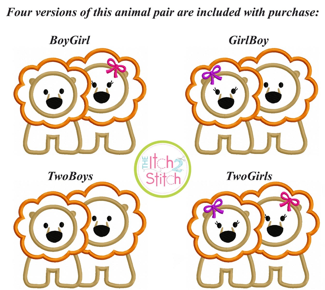 Four different variations of this animal pair are included with purchase (two boys, two girls, boy/girl, girl/boy); the girls have eyelashes and a hairbow, the boys do not.