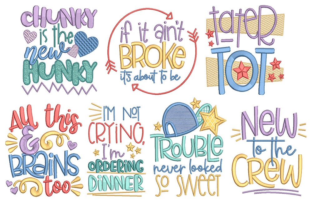 *Please note that the following design contain applique components:Ā "Trouble never looked so sweet"Ā
