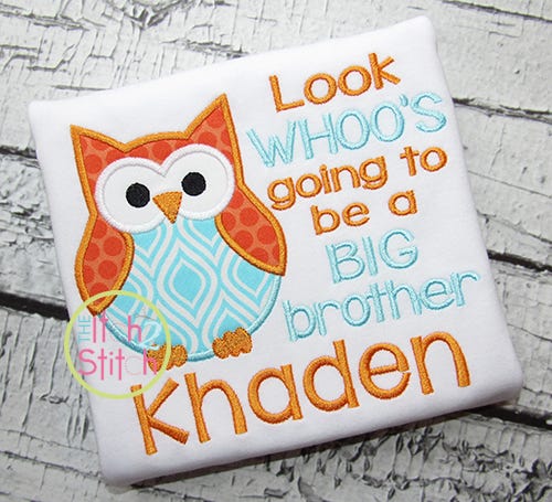 "Look WHOO's going to be a BIG brother" text is included in the design file. Sample personalized with our "Behind These Hazel Eyes" font (NOT included)