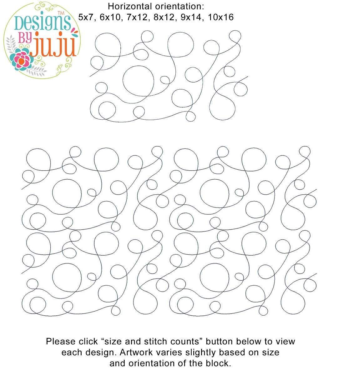 Please note: Both the scale of each pattern and arrangement of the motifs may vary based on the hoop size. Please click the "Size and Stitch Count" button to view the artwork for each size.