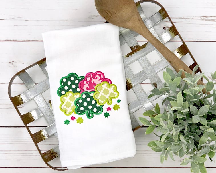 Applique shamrocks emboidery design, perfect for St. Patrick's Day