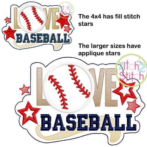 The 4x4 size has some traditional fill stitch stars, the larger sizes have applique stars.