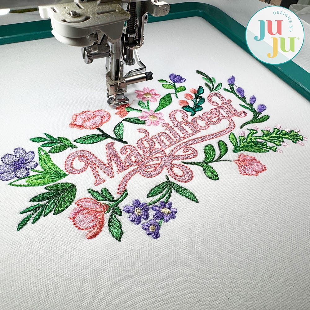If you love magnificent word art, this design is for you! The word "Magnificent" is framed with gorgeous florals and is a lovely choice for stitching thoughtful gifts, keepsakes, or fabulous accents for your space.