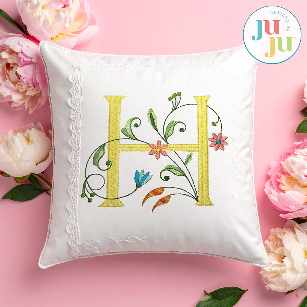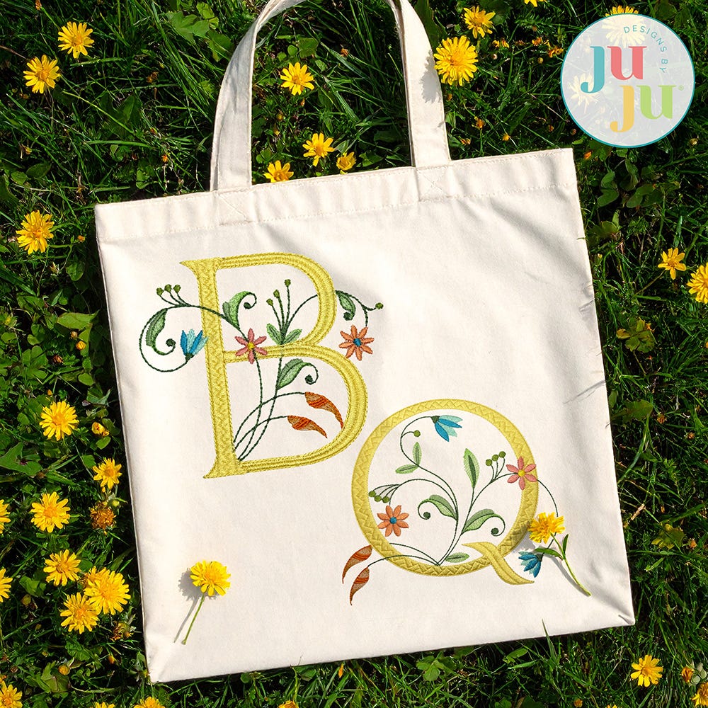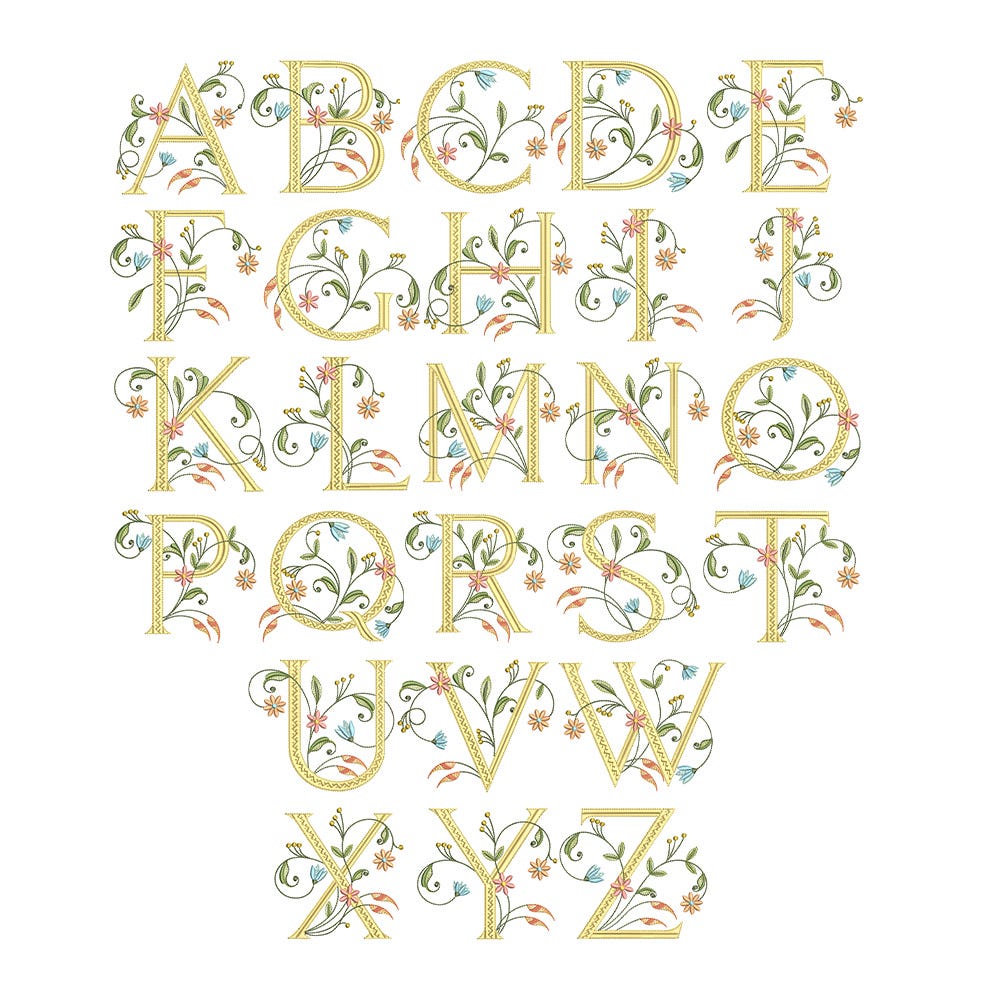 Add chic elegance to your projects with our Meadow Chic Monogram. This embroidery-only monogram features a beautiful blend of stitch types to create serif-style letters embellished with intricate florals and vines. This monogram exudes chic sophistication and is perfect for wedding gifts, seasonal decor, and so much more!