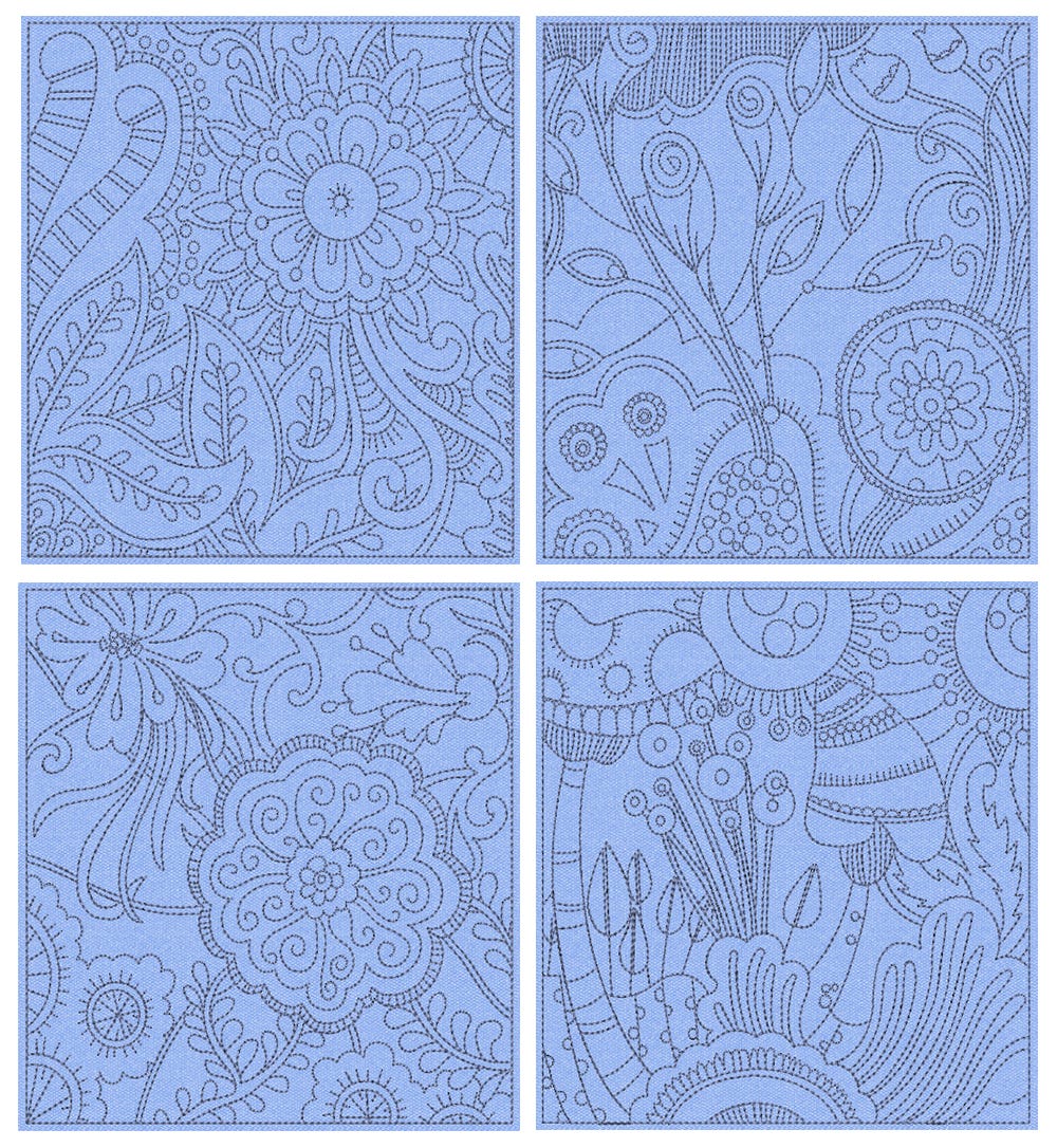 4 beautiful mehndi inspired quilt blocks!