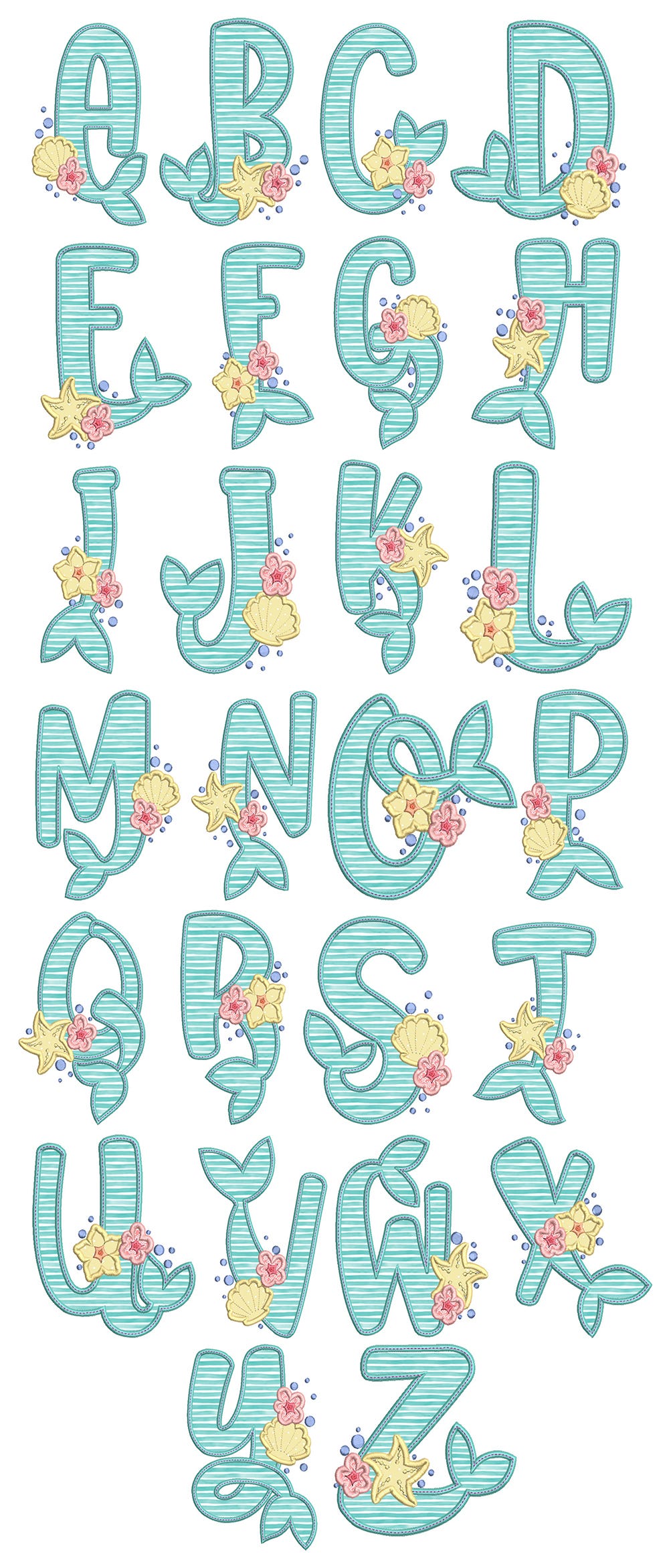 Mermaid themed alphabet. Letters A-Z