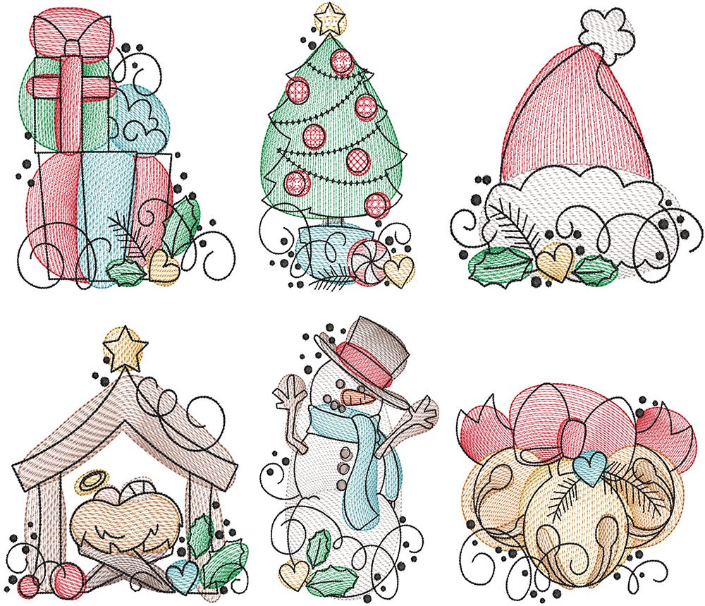 6 adorable Christmas designs in our popular sketched style!