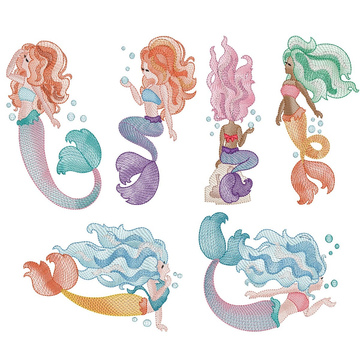6 stunning mermaid designs in our popular sketched style! These designs are embroidery-only, featuring a light and airyĀ sketch fill pattern.