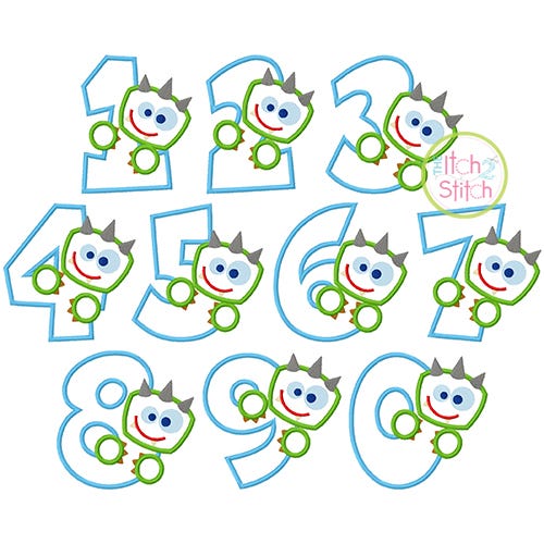 You will receive all numbers 0-9 (10 files) in four sizes ( 4", 5", 6" and 7").