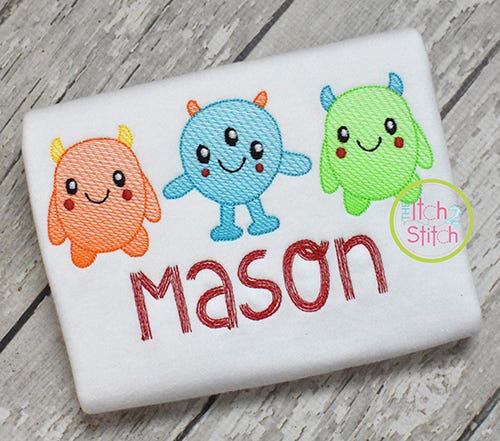 Please note this is not applique, nor is it a traditional fill stitch design. The light and airy "sketch" fill pattern allows for a quick stitch out. The space between each line of stitching varies such that it is more dense at the bottom than the top of each object to create the shading effect. Each object is finished off with a triple bean stitch outline. We do not recommend resizing this design in software.