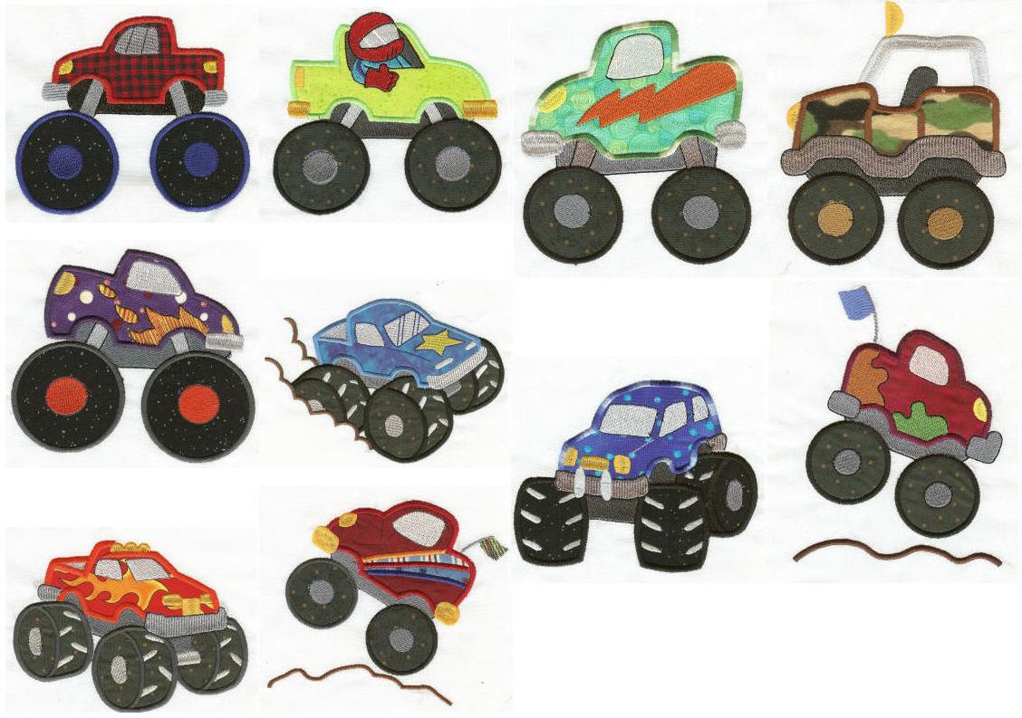 Here are some totally cool monster trucks for your little boys! I know my little 6 year old boy is going crazy over them. My tester sewed out the jeep one from old flannel PJ's that belonged to her grandson. What a great idea!